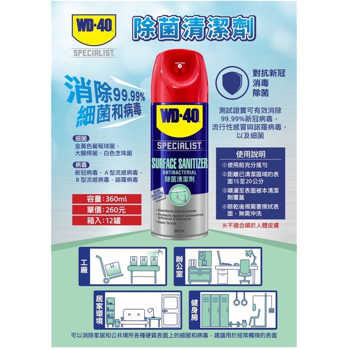 WD40 除菌清潔劑 360ml 原裝進口 清潔 健身房 辦公室 預防 新冠病毒 冠狀病毒 流感 諾如病毒 哈家人WD40 除菌清潔劑 360ml 原裝進口 清潔 健身房 辦公室 預防 新冠病毒 冠狀病毒 流感 諾如病毒 哈家人Cleaning Agents【 哈家人 】油Shop
