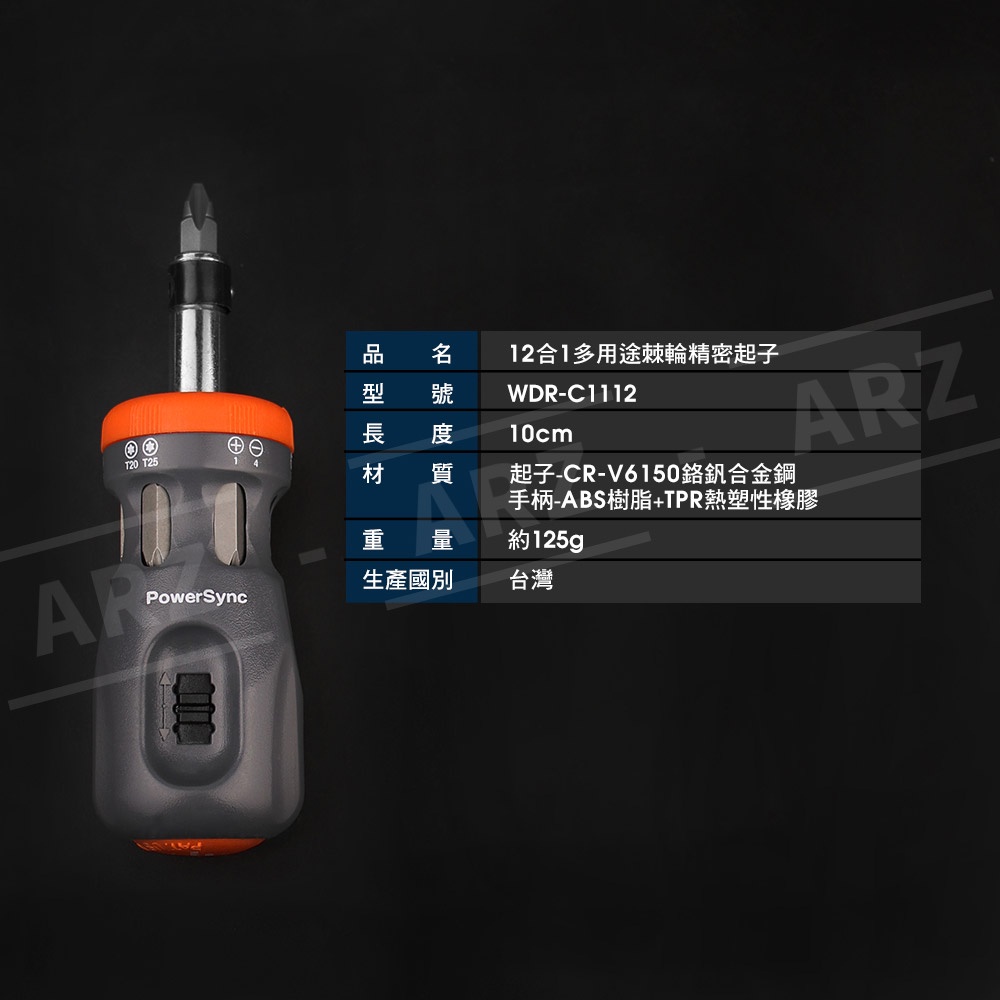 PowerSync 12合1多功能精密螺絲起子【ARZ】【D063】螺絲起子 10齒 棘輪起子 起子收納 MIT 群加WDR-C1112/10齒ToolsARZ行動商城