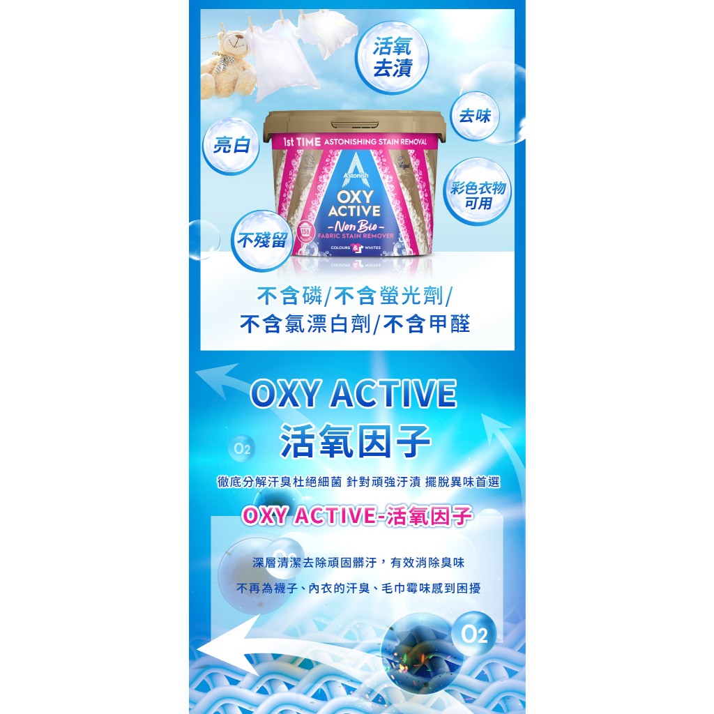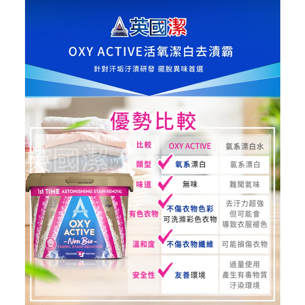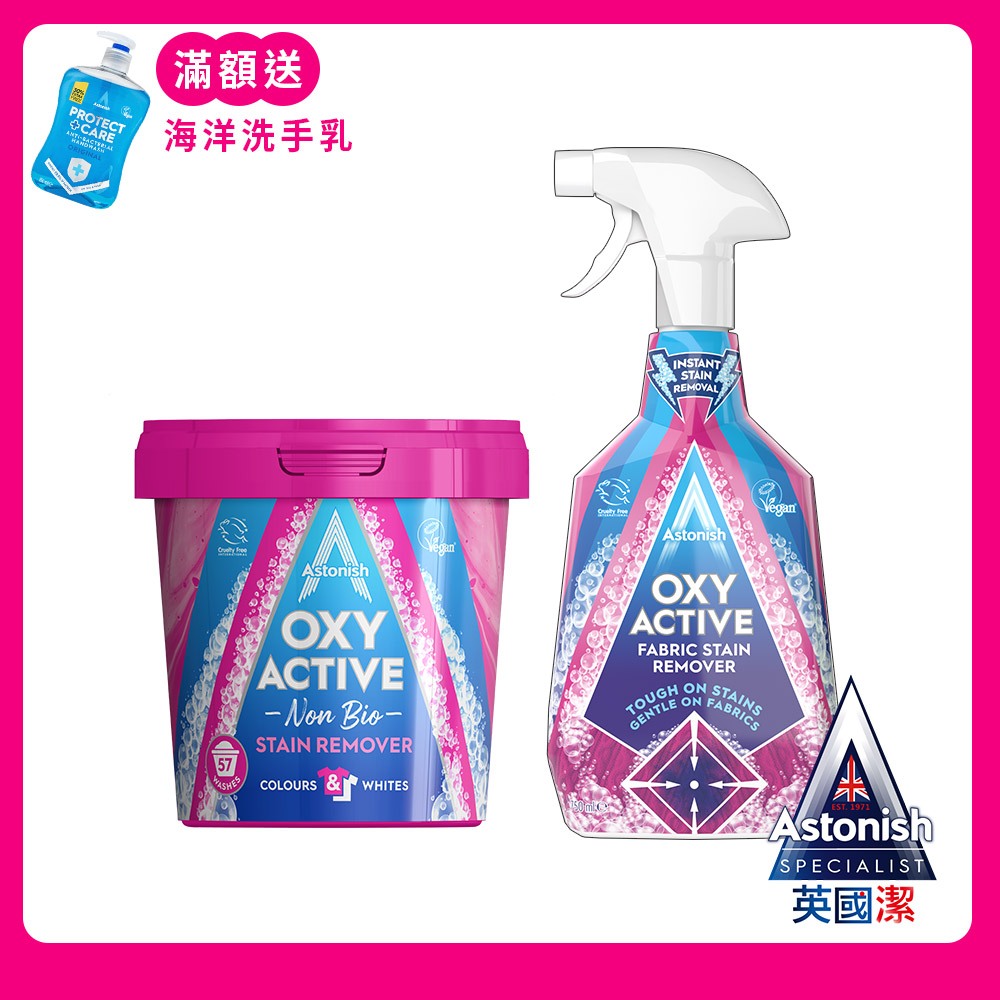 【彩色衣服適用】Astonish英國潔活氧潔衣組(去漬霸+衣物去漬劑)衣服去漬 衣服泛黃 衣領髒汙 衣服汗臭 衣服清潔熱銷4入組(除黴+浴廁+除油+衣物噴)|衣噴750ml+衣物去漬霸1.25kg|除黴+浴廁+衣物去漬劑|衣物去漬劑(750ml)|衣物去漬霸1.25kg|衣物去漬劑x3|衣噴+織物+衣物去漬霸1.25kgLaundry CareAstonish 英國潔|官方台灣總代理