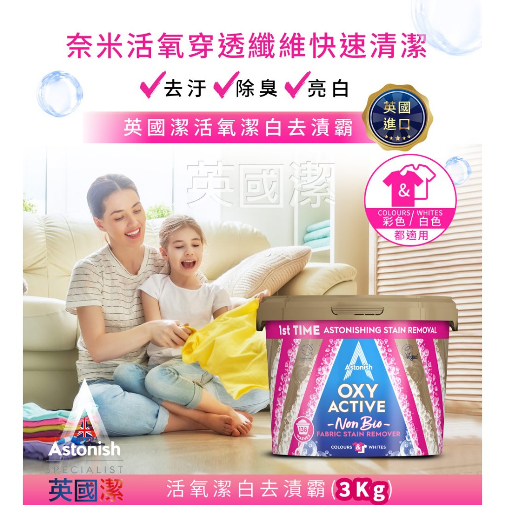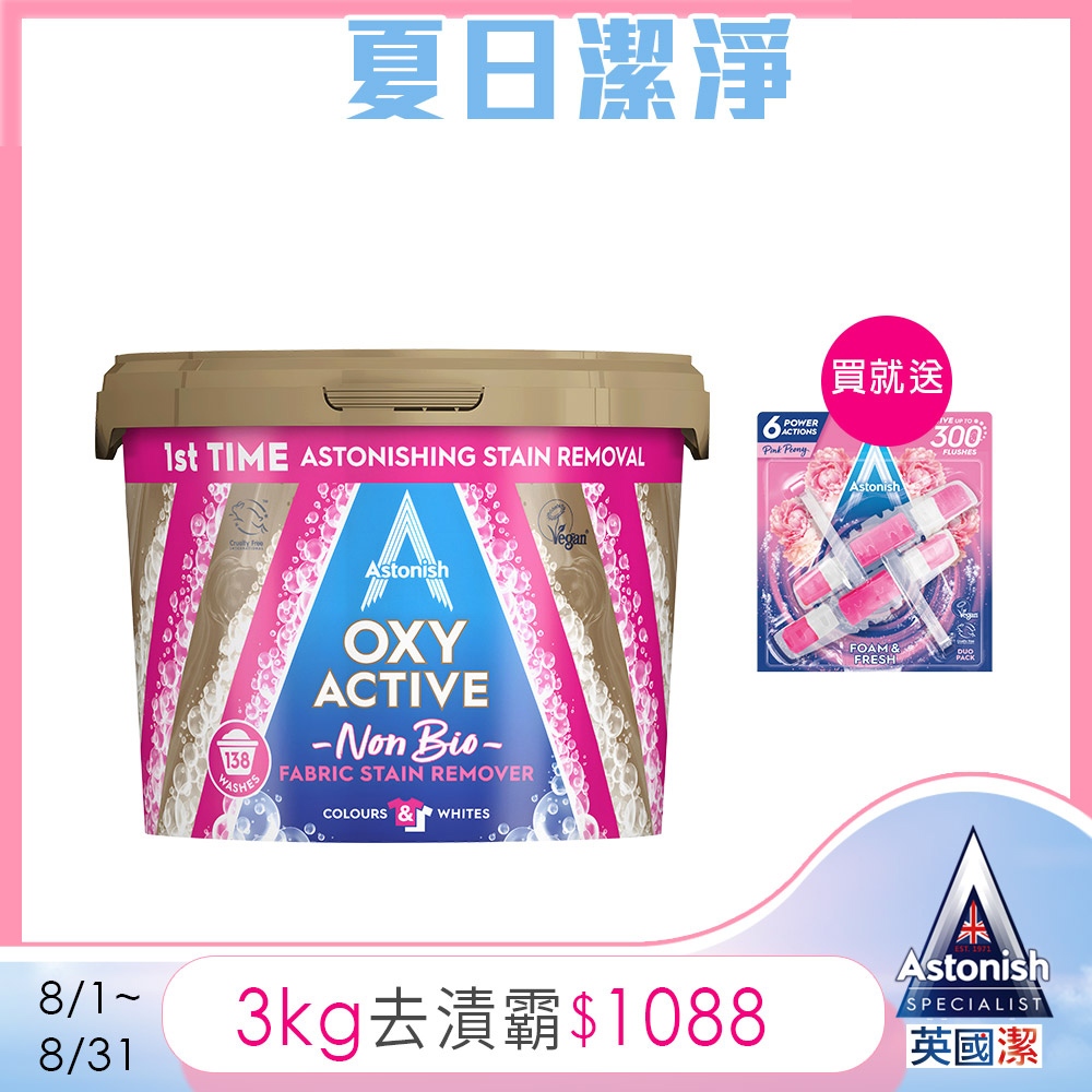 【Astonish】英國潔活氧潔白去漬霸(3kg)加贈牡丹馬桶錠 衣服去漬 泛黃 汗臭 衣領髒汙 彩色衣服不褪色去漬霸3kgx1+贈牡丹馬桶錠x1盒Cleaning AgentsAstonish 英國潔|官方台灣總代理