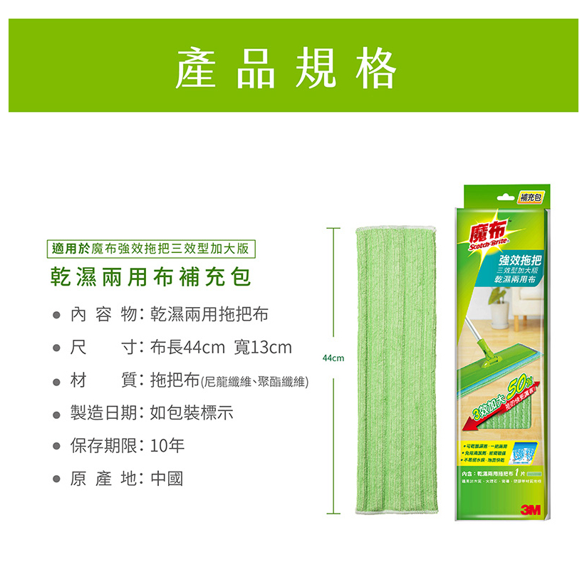 3M 百利 魔布強效拖把三效加大版拖把專用補充布乾濕兩用布Mops3M 授權官方旗艦館