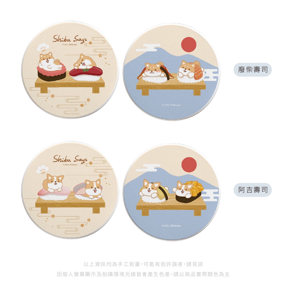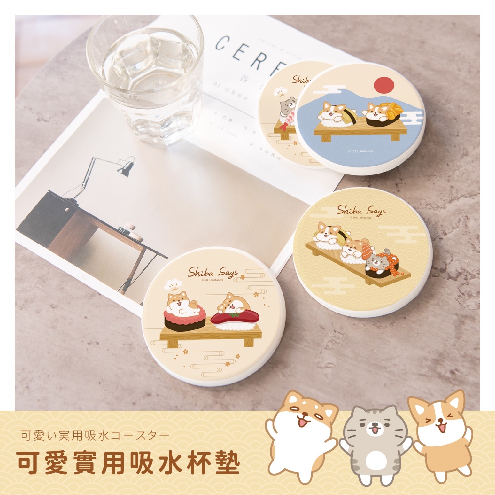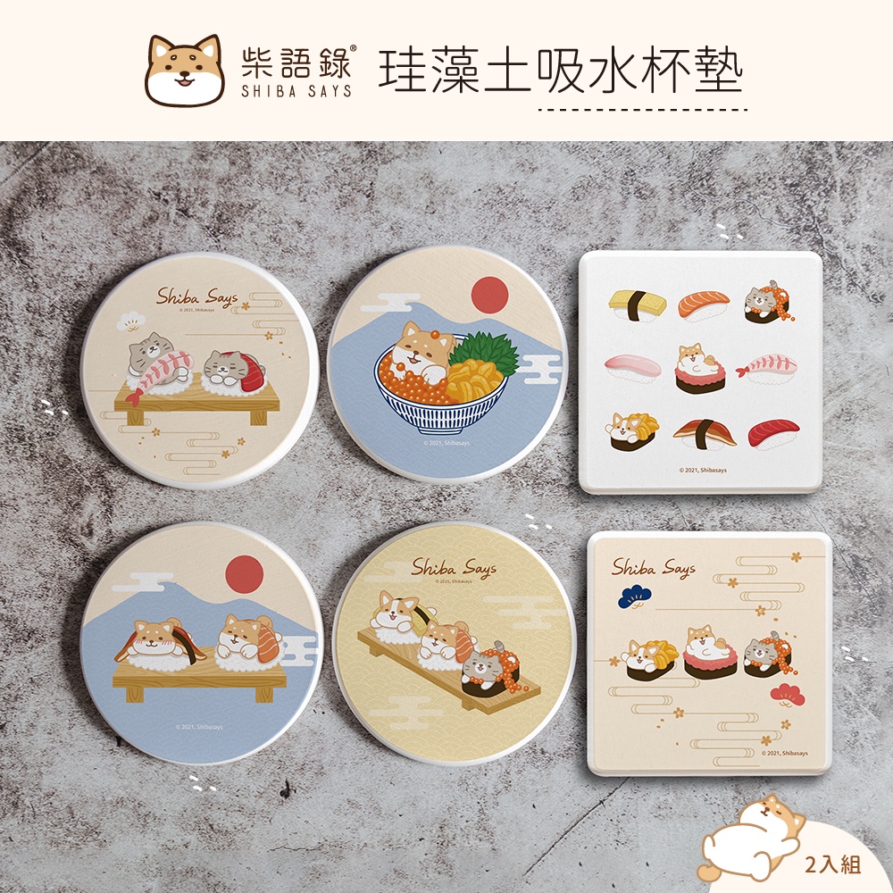 柴語錄 Shiba Says 日式壽司 硬式珪藻土杯墊 (2入組) 貓咪 狗狗 柴犬 柯基 防潮 硅藻土【5ip8】廢柴壽司|阿吉壽司|太子壽司|大滿貫|丼飯套餐Placemats & Coasters5IP8居家生活館