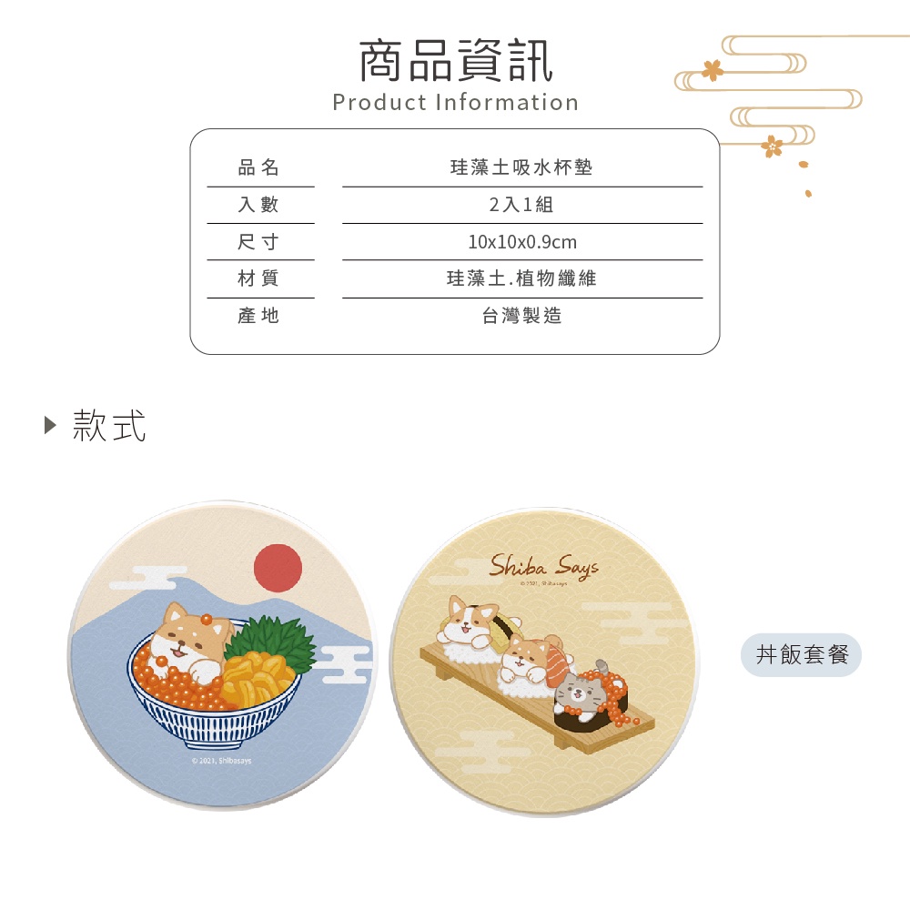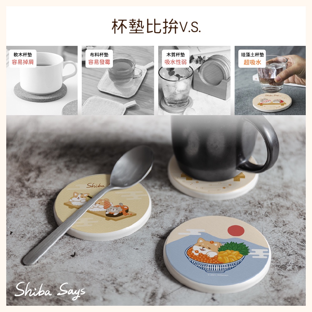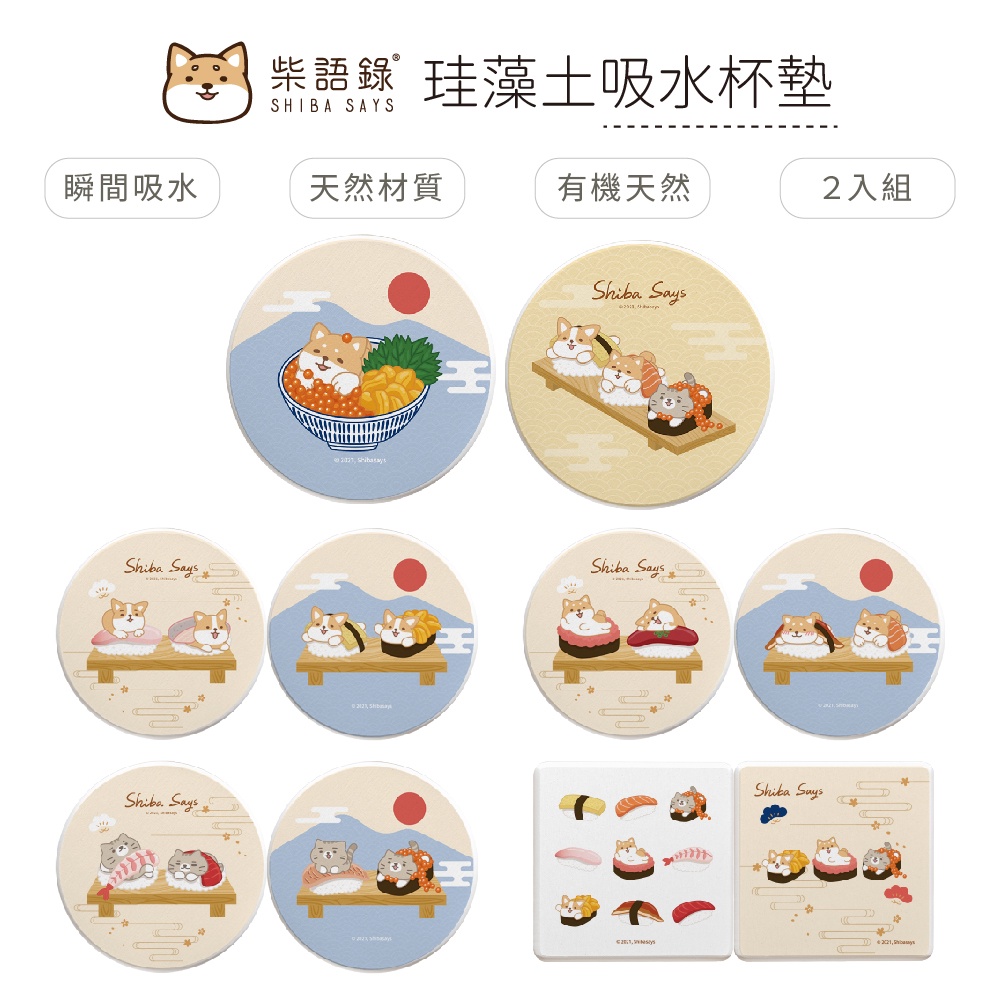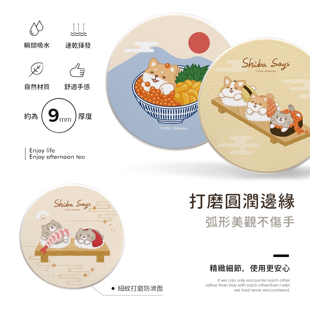 柴語錄 Shiba Says 日式壽司 硬式珪藻土杯墊 (2入組) 貓咪 狗狗 柴犬 柯基 防潮 硅藻土【5ip8】廢柴壽司|阿吉壽司|太子壽司|大滿貫|丼飯套餐Placemats & Coasters5IP8居家生活館