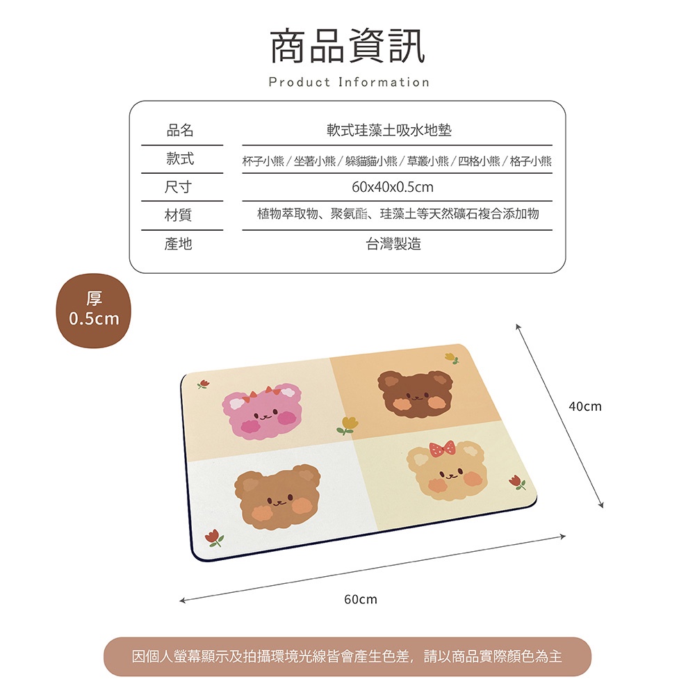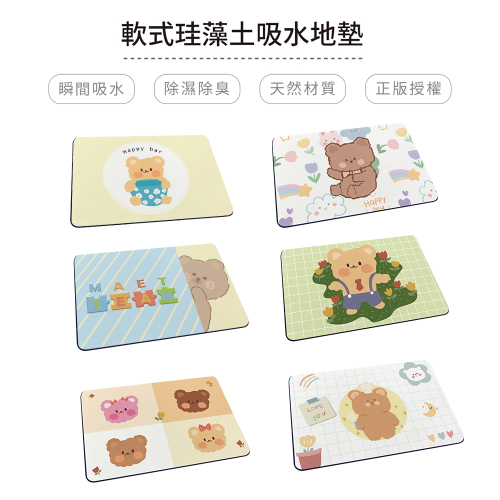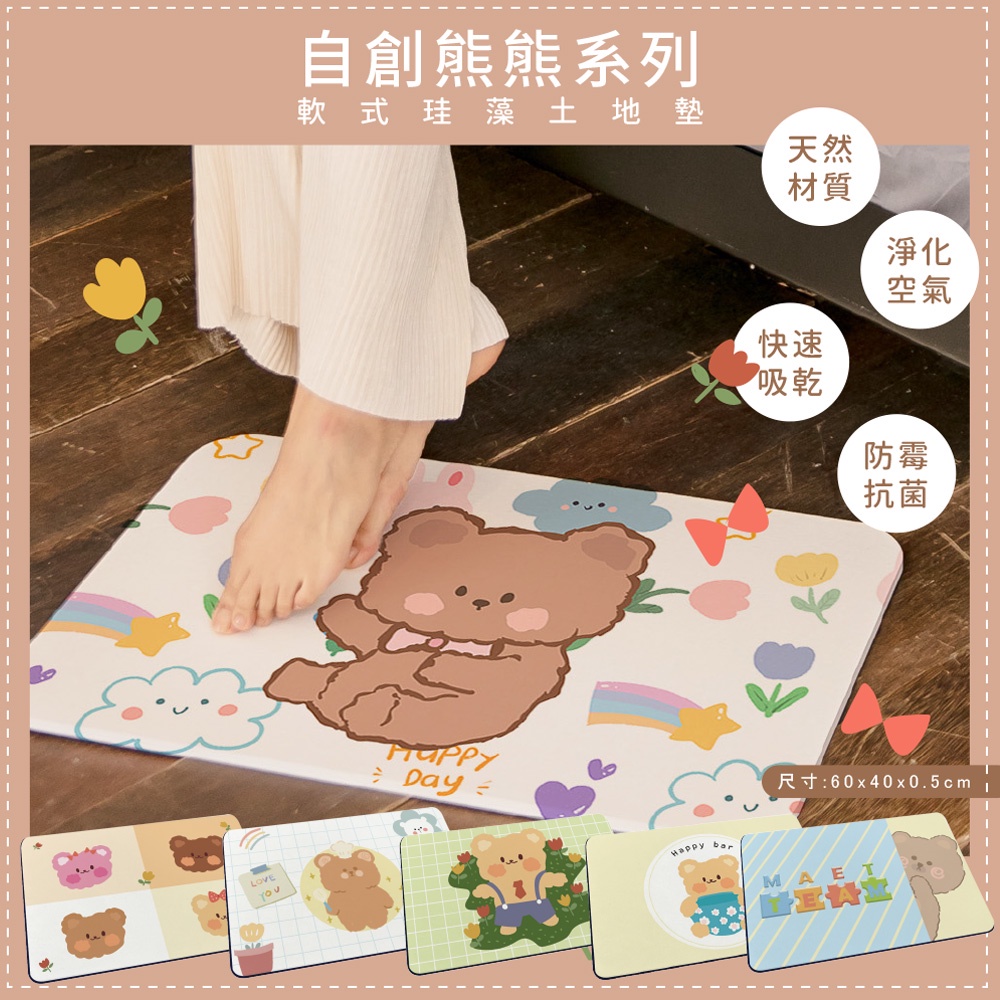 自創熊熊系列 軟式珪藻土吸水地墊 60*40*0.5cm 地墊/防潮/腳踏墊/硅藻土/吸水墊踏墊/吸水墊【5ip8】坐著小熊|杯子小熊|格子小熊|草叢小熊|躲貓貓小熊|四格小熊Carpets & Rugs5IP8居家生活館
