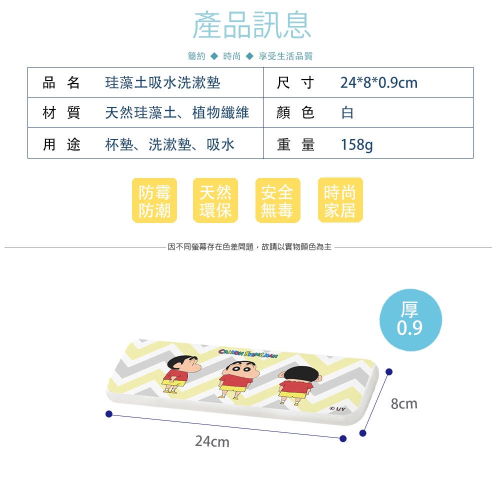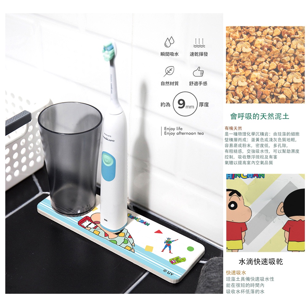 蠟筆小新 硬式珪藻土洗漱墊|24×8|防潮 杯墊 瀝水 硅藻土牙刷架 風間 妮妮 阿呆 正男【5ip8】LB0002小新|小新好朋友|賴床Placemats & Coasters5IP8居家生活館