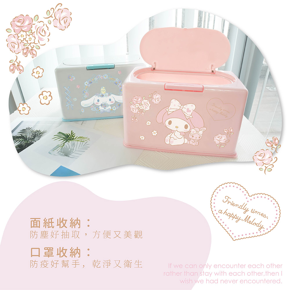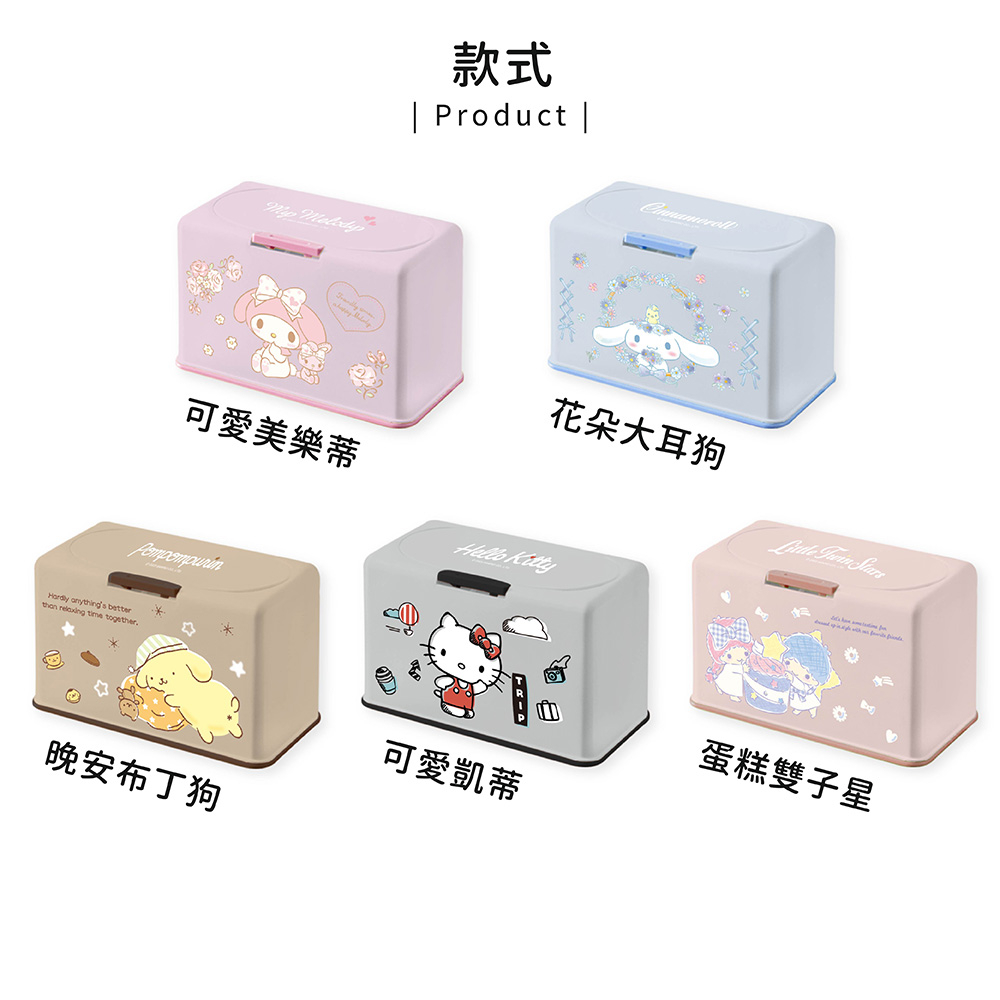 三麗鷗 50入口罩收納盒 衛生紙盒 濕紙巾盒 桌上收納 台灣製造 KITTY 美樂蒂 布丁狗 大耳狗 雙子星 5ip8可愛美樂蒂|可愛凱蒂|蛋糕雙子星|花朵大耳狗|晚安布丁狗Tissue Holders5IP8居家生活館
