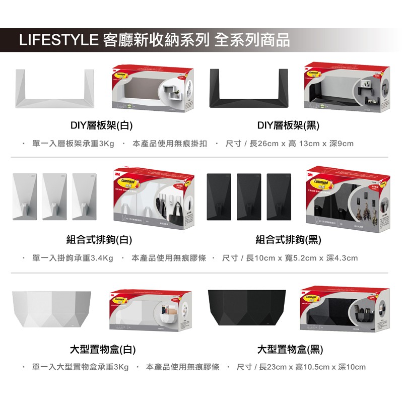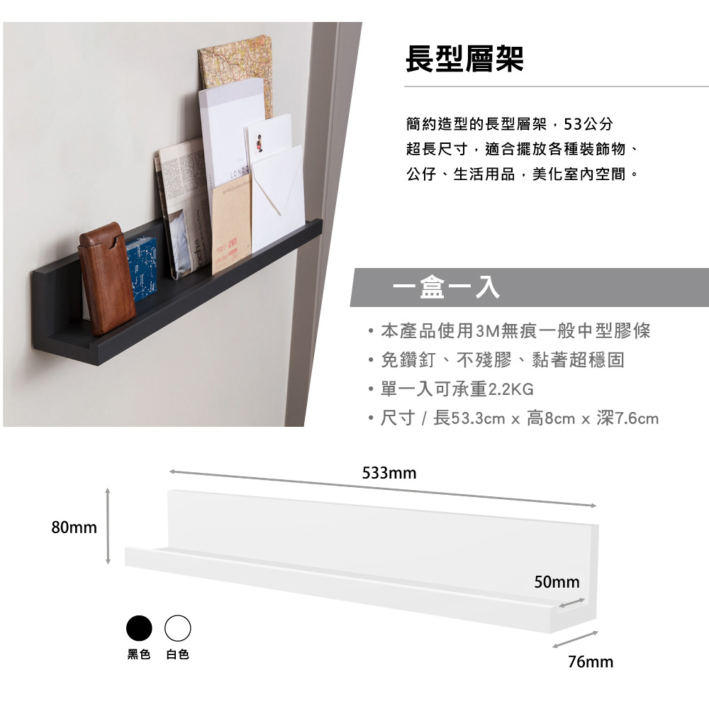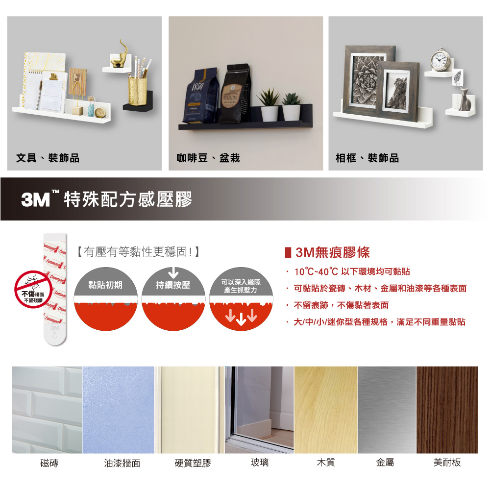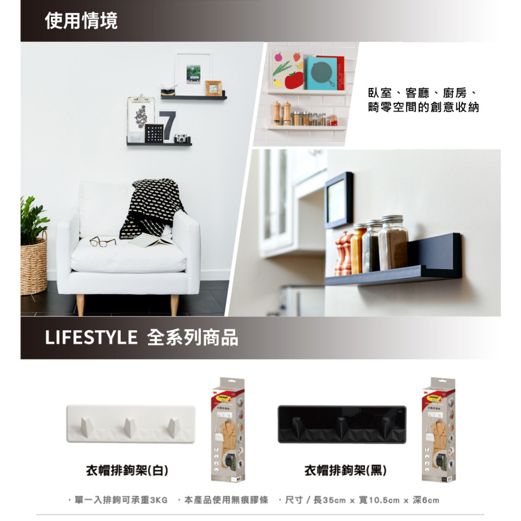 3M 無痕 LIFESTYLE層板置物公仔收納掛架-長型層架(白/黑)白色|黑色Shelves & Racks3M 授權官方旗艦館