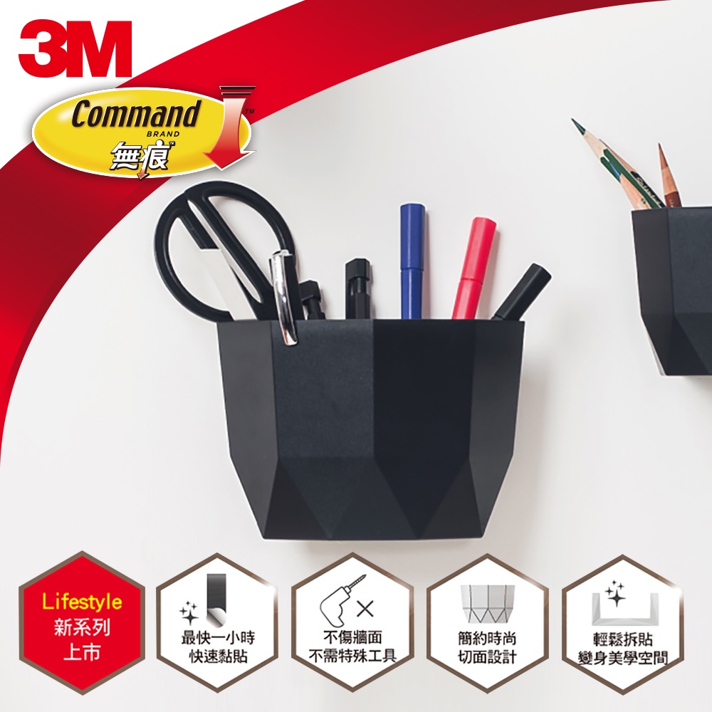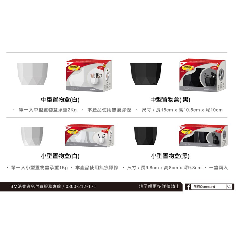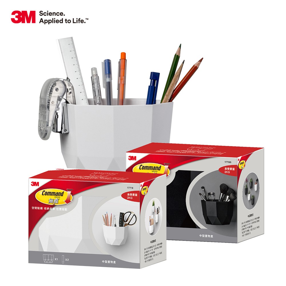 3M 無痕 LIFESTYLE牆壁裝飾美妝植栽收納盒-中型置物盒 (白/黑)白色|黑色Hooks3M 授權官方旗艦館