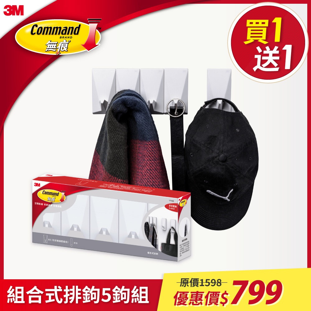 3M 無痕 LIFESTYLE-組合式排鉤5鉤組【買一送一】買一送一Hooks3M 授權官方旗艦館