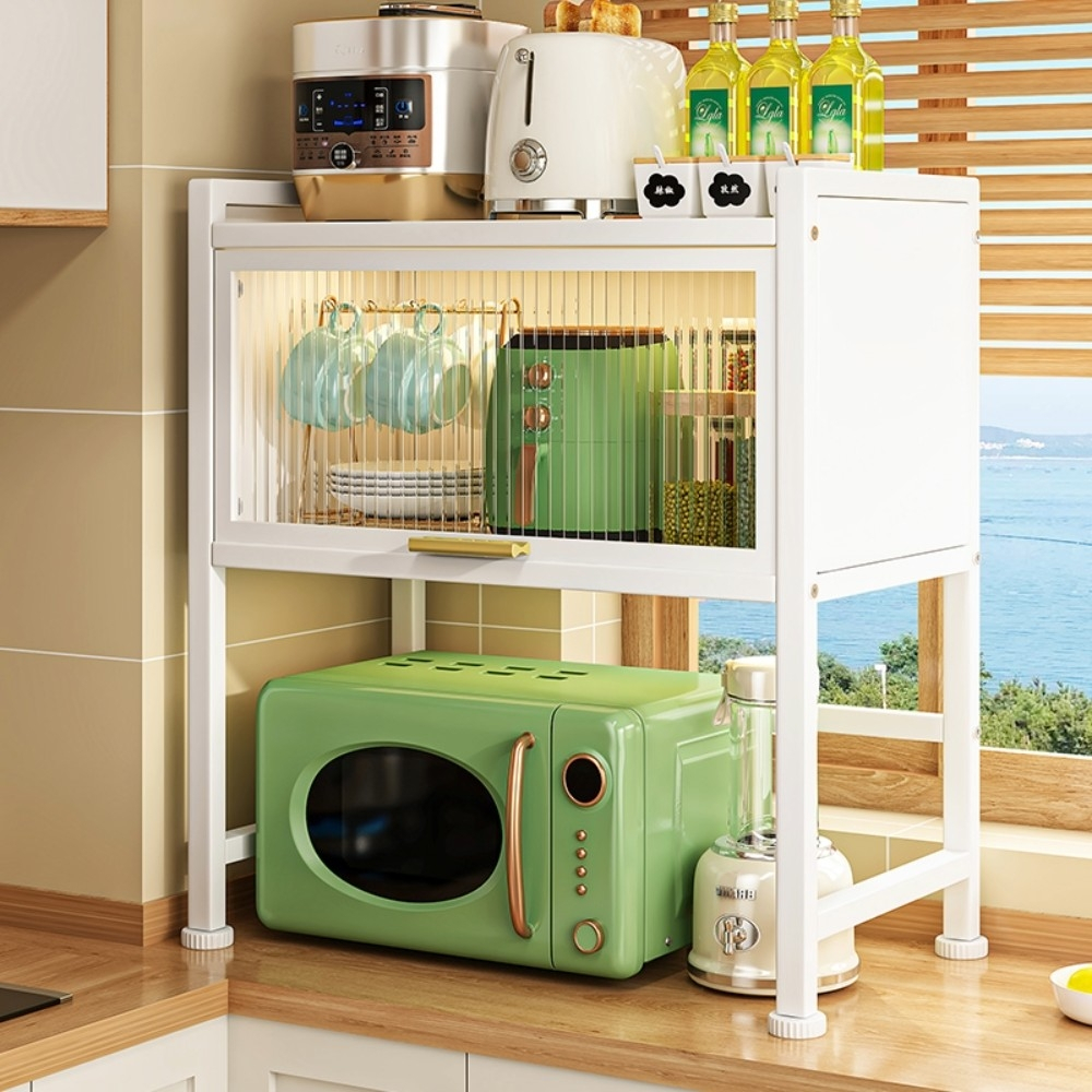 【AOTTO】多功能廚房翻蓋微波爐置物架(收納架 置物架 層架)白色|黑色Kitchen RacksAOTTO創意家居