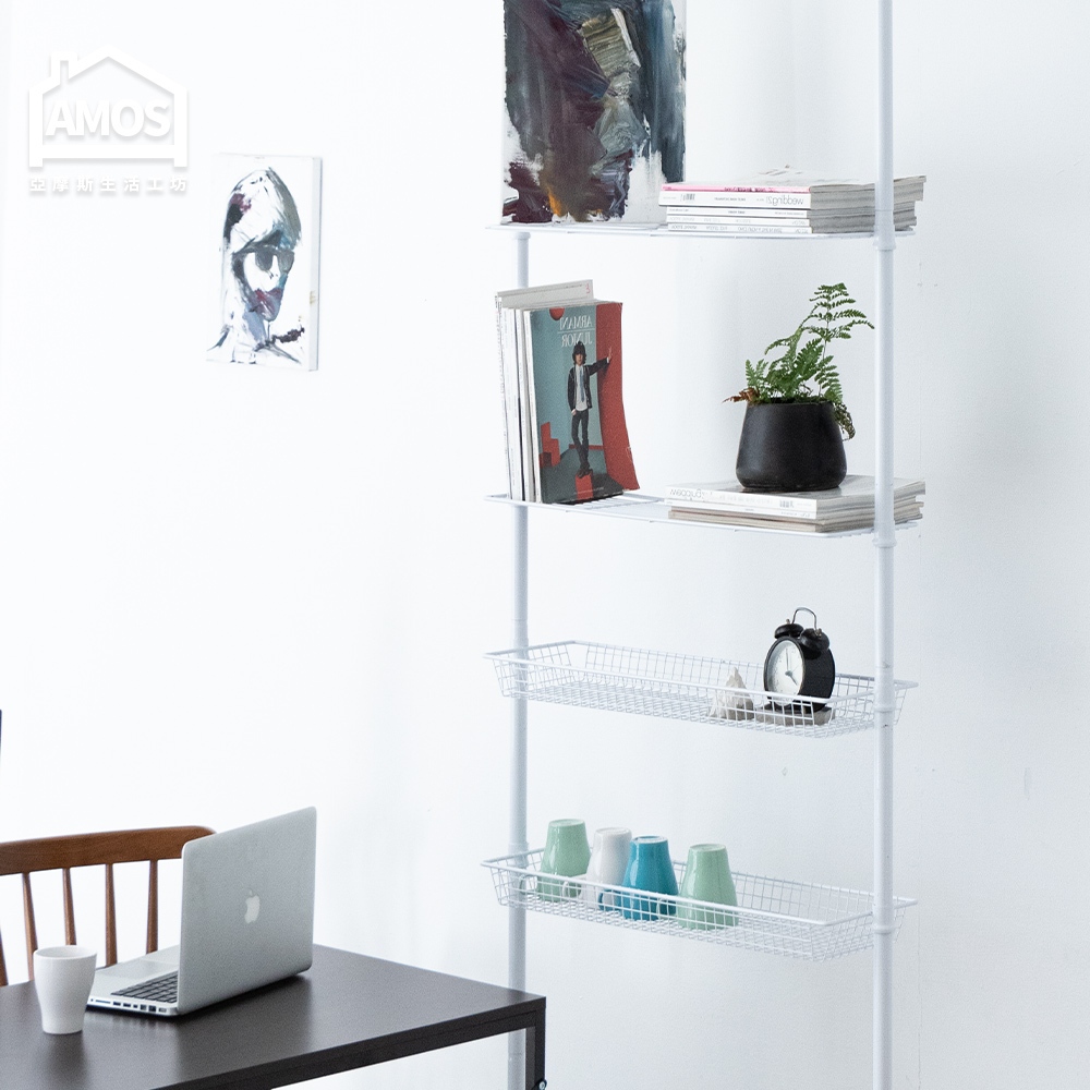 Amos 亞摩斯 鐵藝頂天立地雙盤雙籃置物收納架 頂天立地 置物架 馬桶架 屏風 壁面收納 牆面收納 TAW007黑色|白色Shelves & RacksAmos亞摩斯
