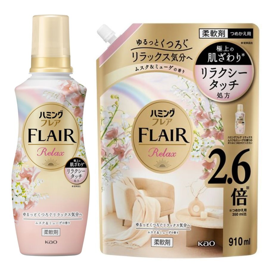 kao 花王 FLAIR Relax 衣物柔軟精 【樂購RAGO】 石原聰美代言 日本製鈴蘭麝香,本體(510ml)|鈴蘭麝香,補充包(910ml)|薰衣草茉莉,本體(510ml)|薰衣草茉莉,補充包(910ml)Laundry Care【樂購RAGO】