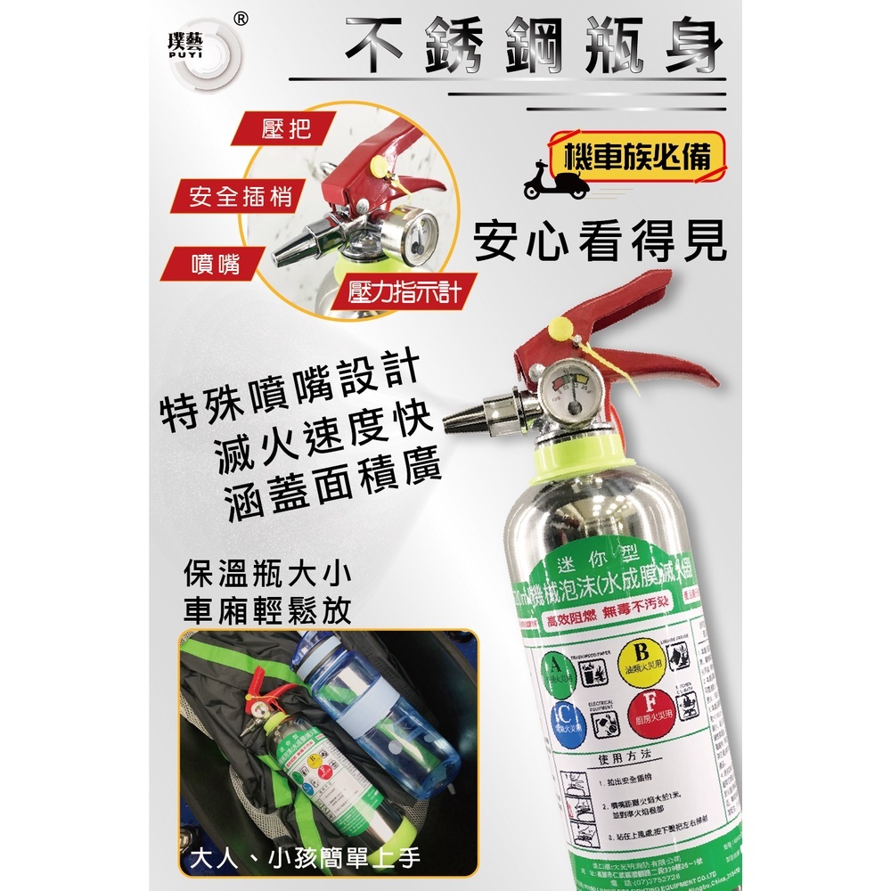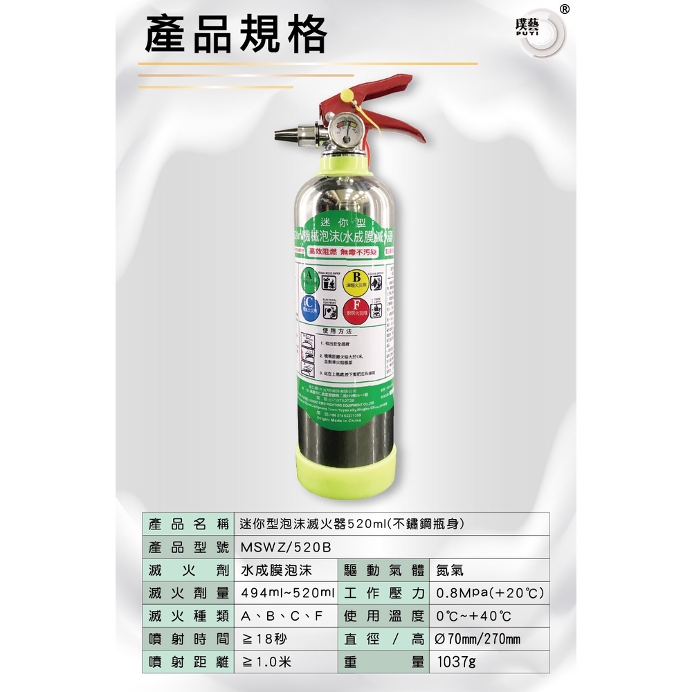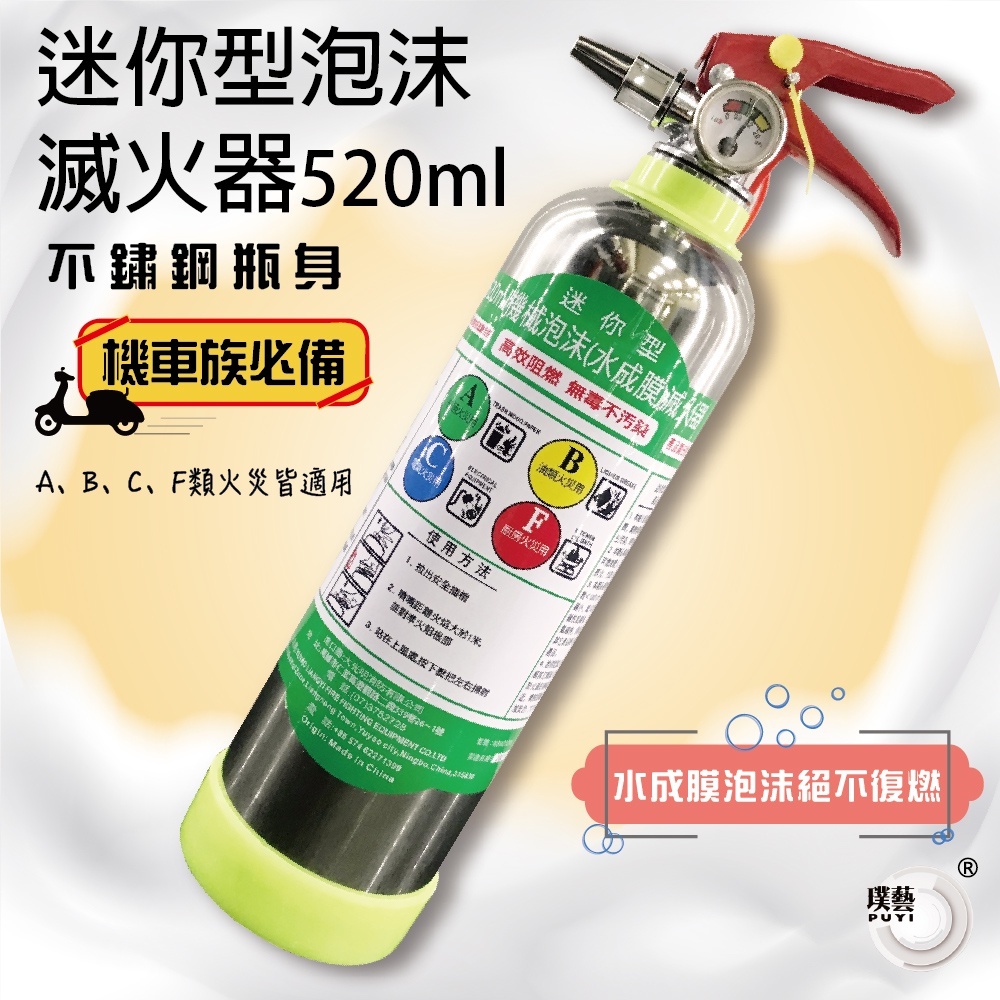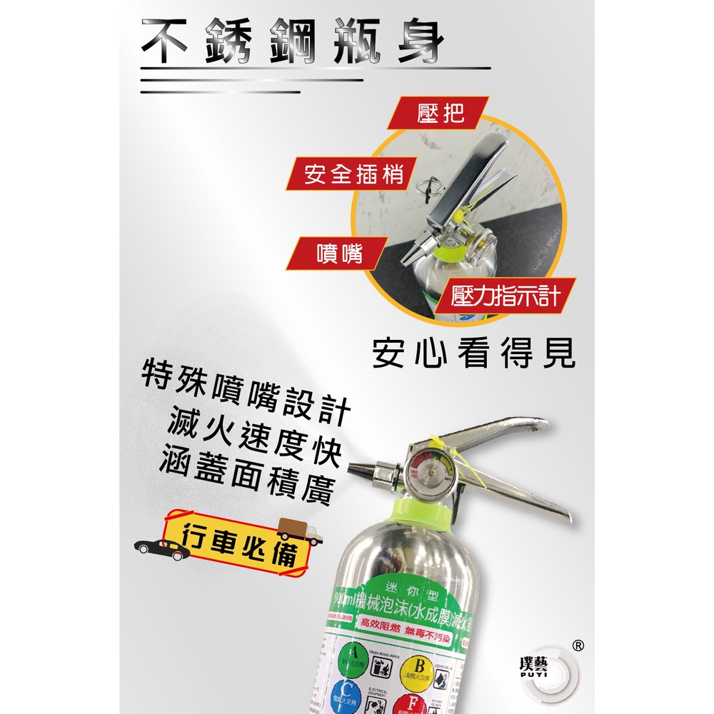 【璞藝】迷你型泡沫滅火器520ml/900ml 水成膜泡沫 抗復燃 居家用 車用 環保無毒520ml(不鏽鋼)|900ml(不鏽鋼)Fire Fighting Equipments【璞藝消防】