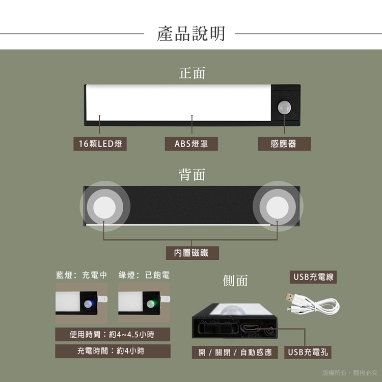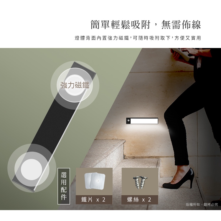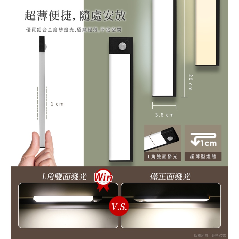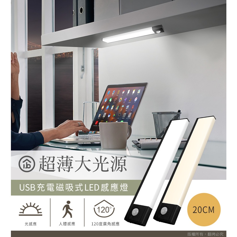 aibo 20公分 超薄大光源 雙感應USB充電磁吸 LED感應照明燈 自然光【現貨】手電筒 感應燈 照明燈自然光aibo 3C生活館