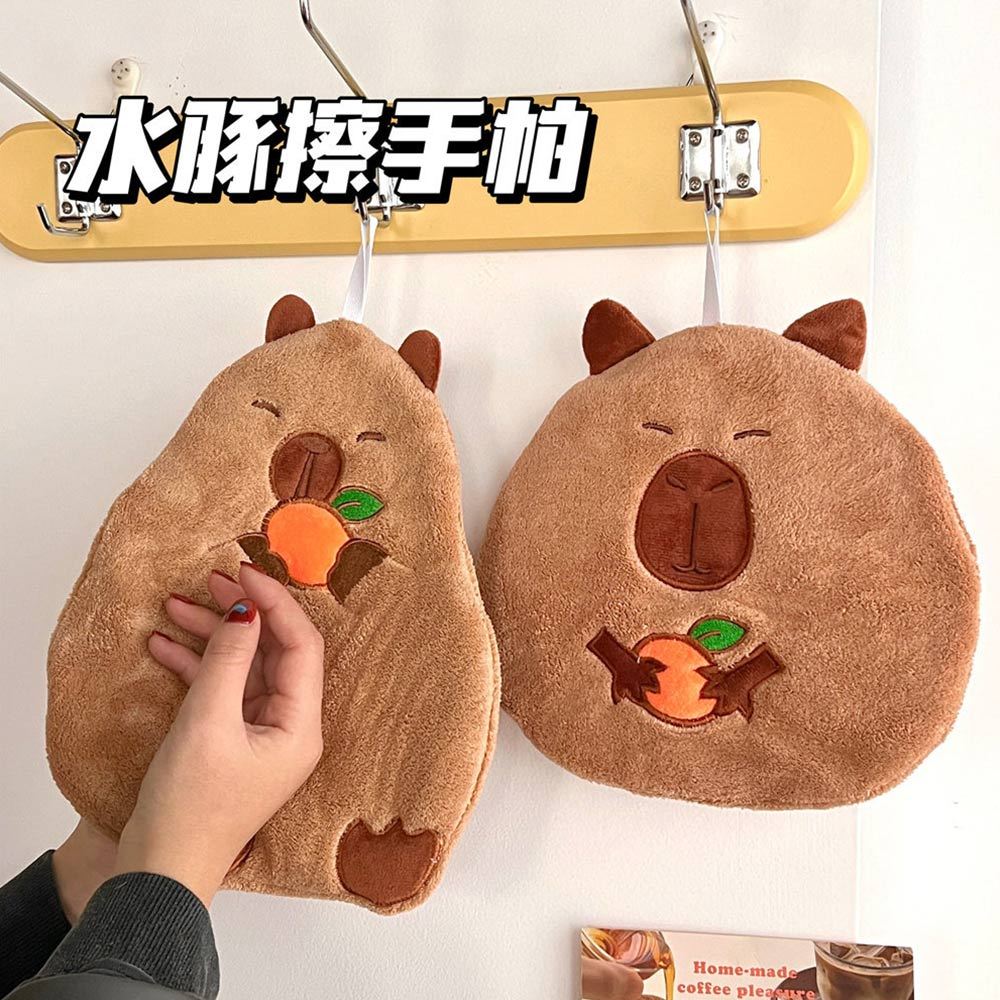 AHUA 阿華有事嗎 可愛水豚可掛式珊瑚絨速乾擦手巾 F0049 生活百貨 掛式擦手巾1#害羞水豚|2#吃橘水豚|3#抱橘水豚Towels & BathrobesAHUA 韓國襪子品牌旗艦店