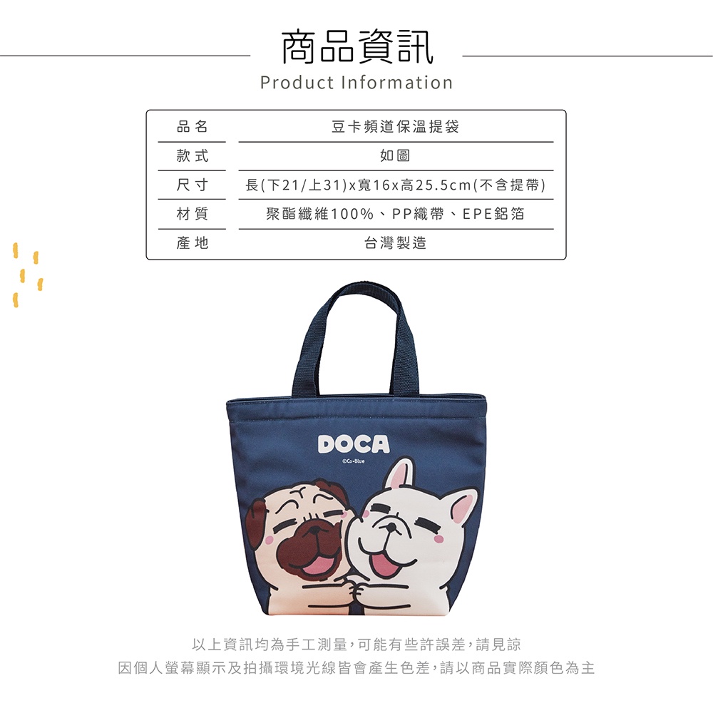 豆卡頻道 大容量鋁箔保溫袋 手提袋 購物袋 保冷袋 便當袋 柴犬 法鬥 巴哥 【5ip8】DC0013白款|藍款Food Storage5IP8居家生活館
