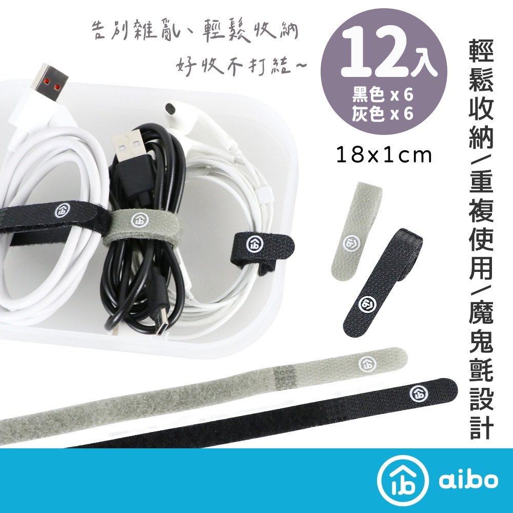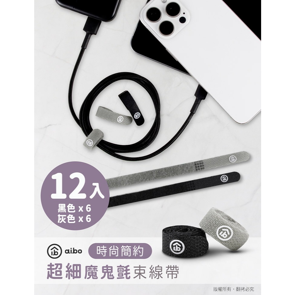 aibo 無印極細【12入】魔鬼氈束線帶【現貨】1cm寬 收納線 魔鬼氈 束線帶 綁帶 理線帶 綑帶 束帶