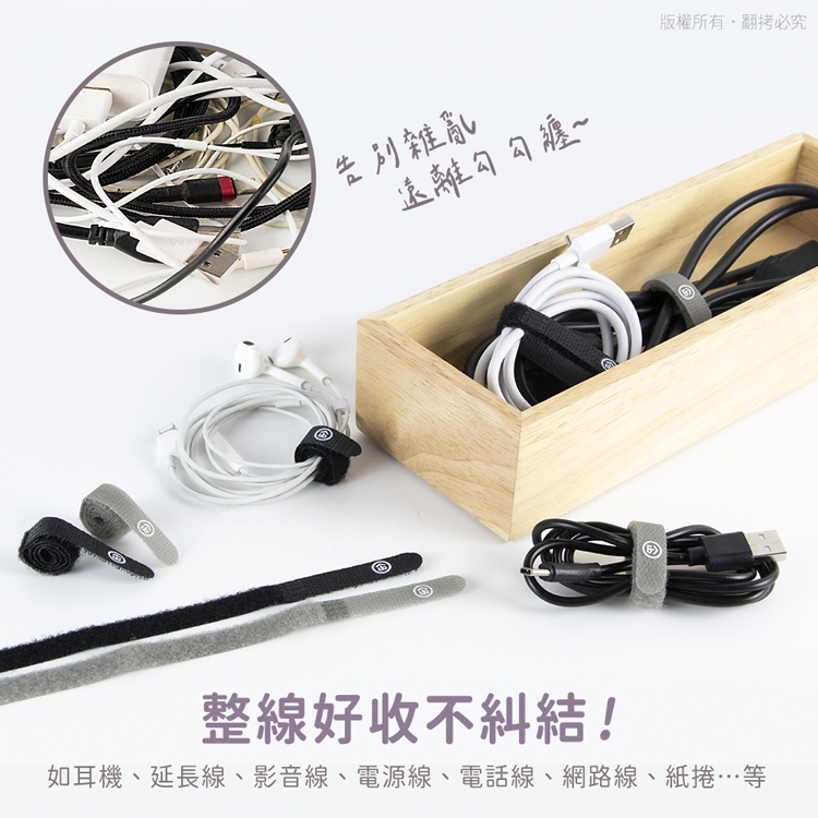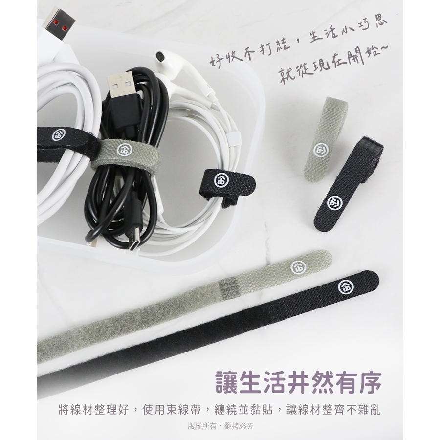 aibo 無印極細【12入】魔鬼氈束線帶【現貨】1cm寬 收納線 魔鬼氈 束線帶 綁帶 理線帶 綑帶 束帶12入Desk Organizersaibo 3C生活館