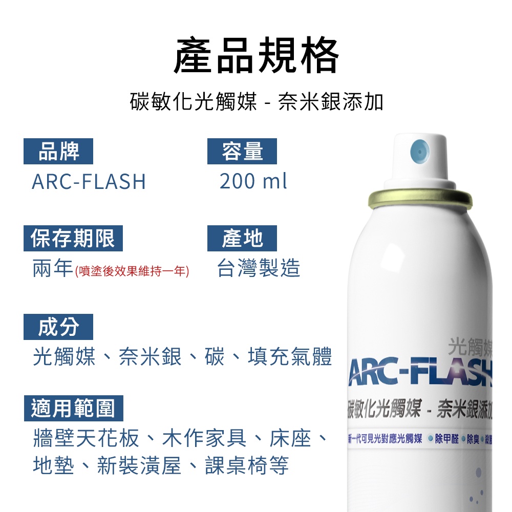 【ARC-FLASH光觸媒】10%高濃度碳敏化光觸媒+奈米銀簡易型噴罐200ml(除甲醛 無光 除菌 菸味)10%碳敏化奈米銀x1|10%碳敏化x1+除臭噴液x1|10%碳敏化x2+除臭噴液x1|10%碳敏化奈米銀x1+除臭噴液x1|10%碳敏化奈米銀x2+除臭噴液x1Cleaning AgentsARC-FLASH光觸媒|官方商城