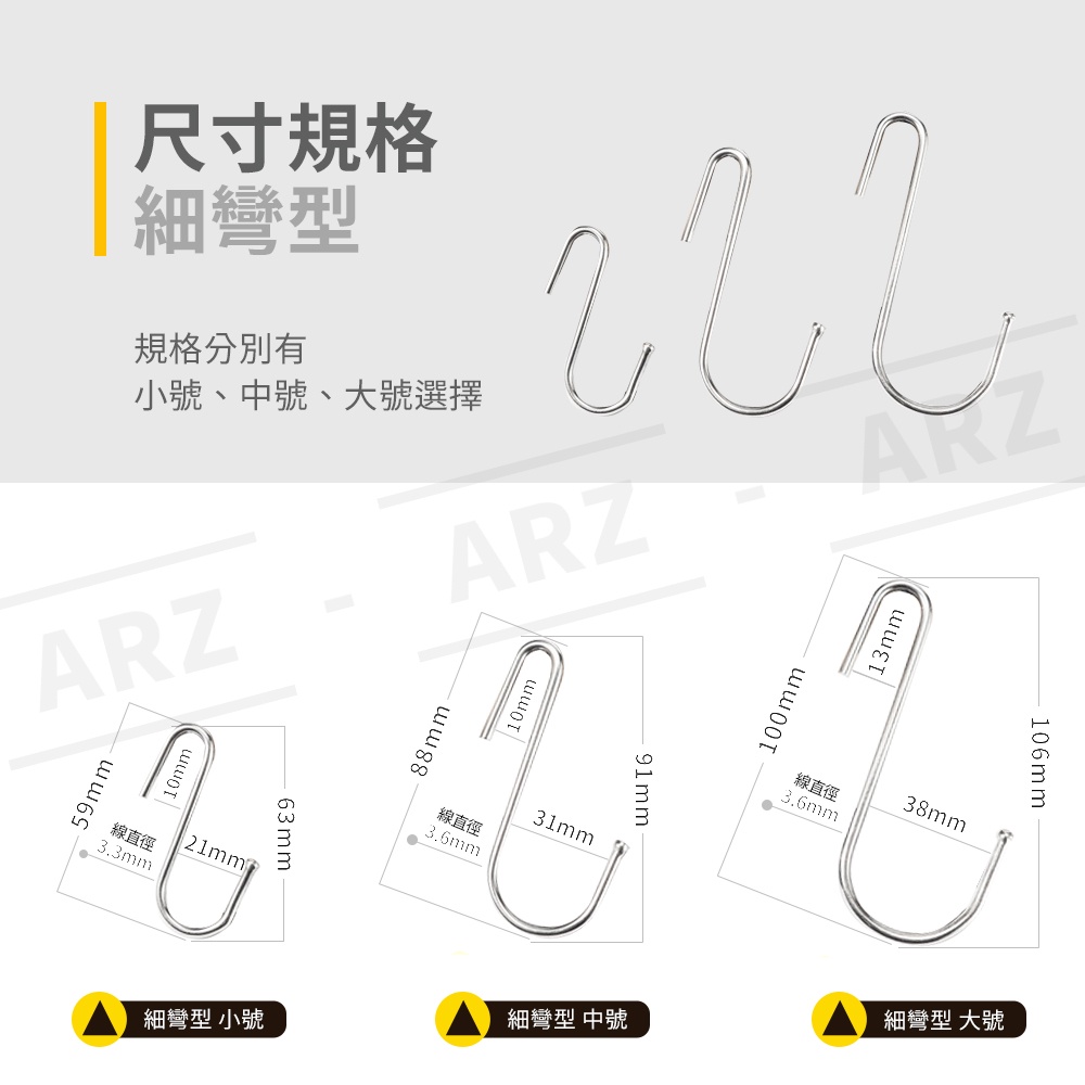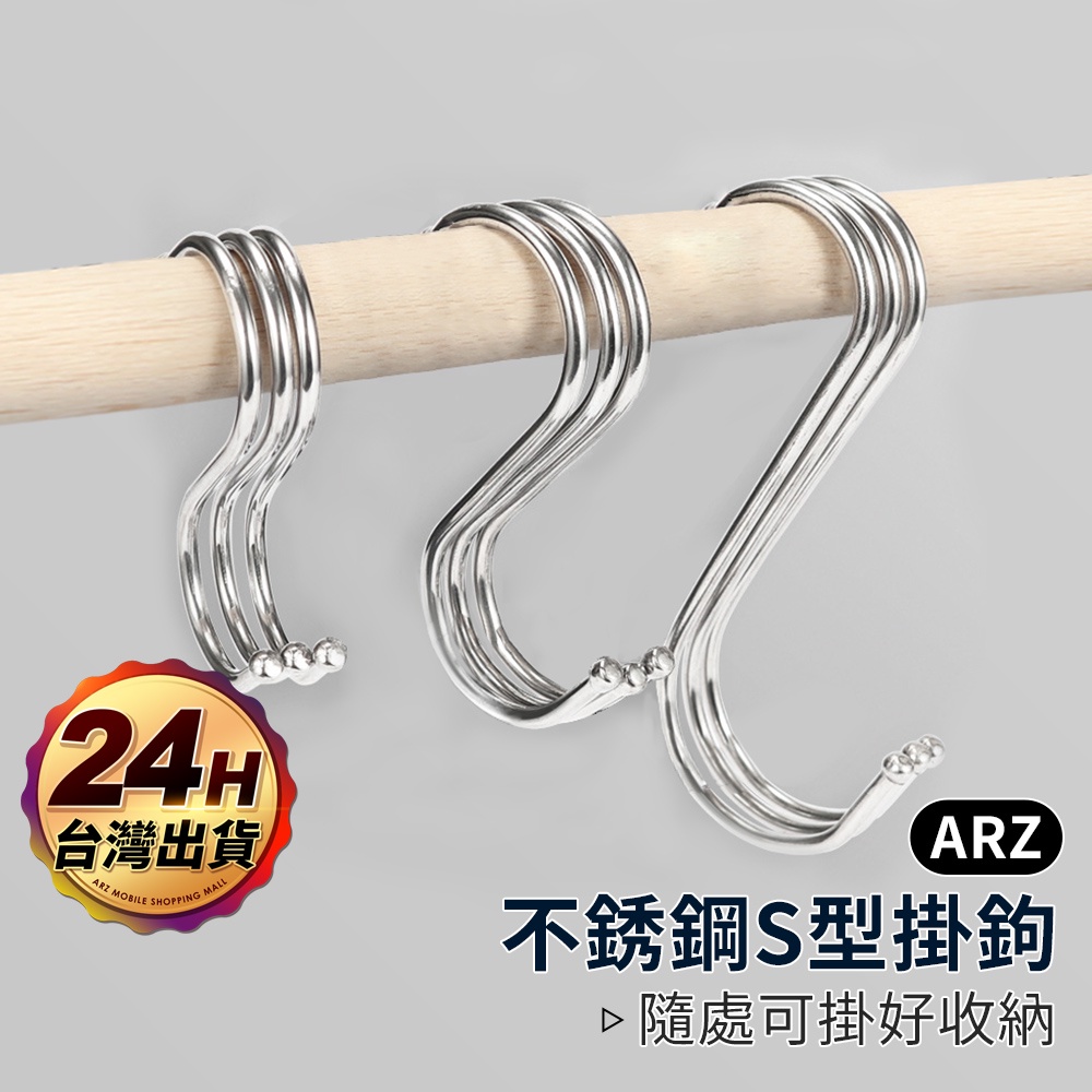 不鏽鋼 S型掛勾【ARZ 實拍現貨】【D026】金屬掛勾 掛勾 掛鈎 免釘 掛鉤 S掛勾 S勾 鐵鉤 衣帽掛鉤 廚房掛勾一般款/小號|一般款/中號|細彎款/小號|細彎款/大號|一般款/大號|細彎款/中號HooksARZ行動商城