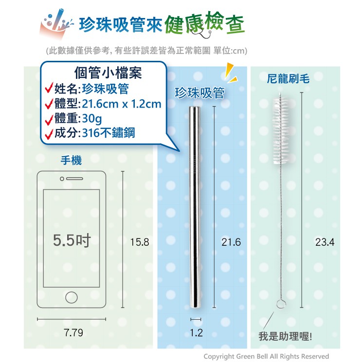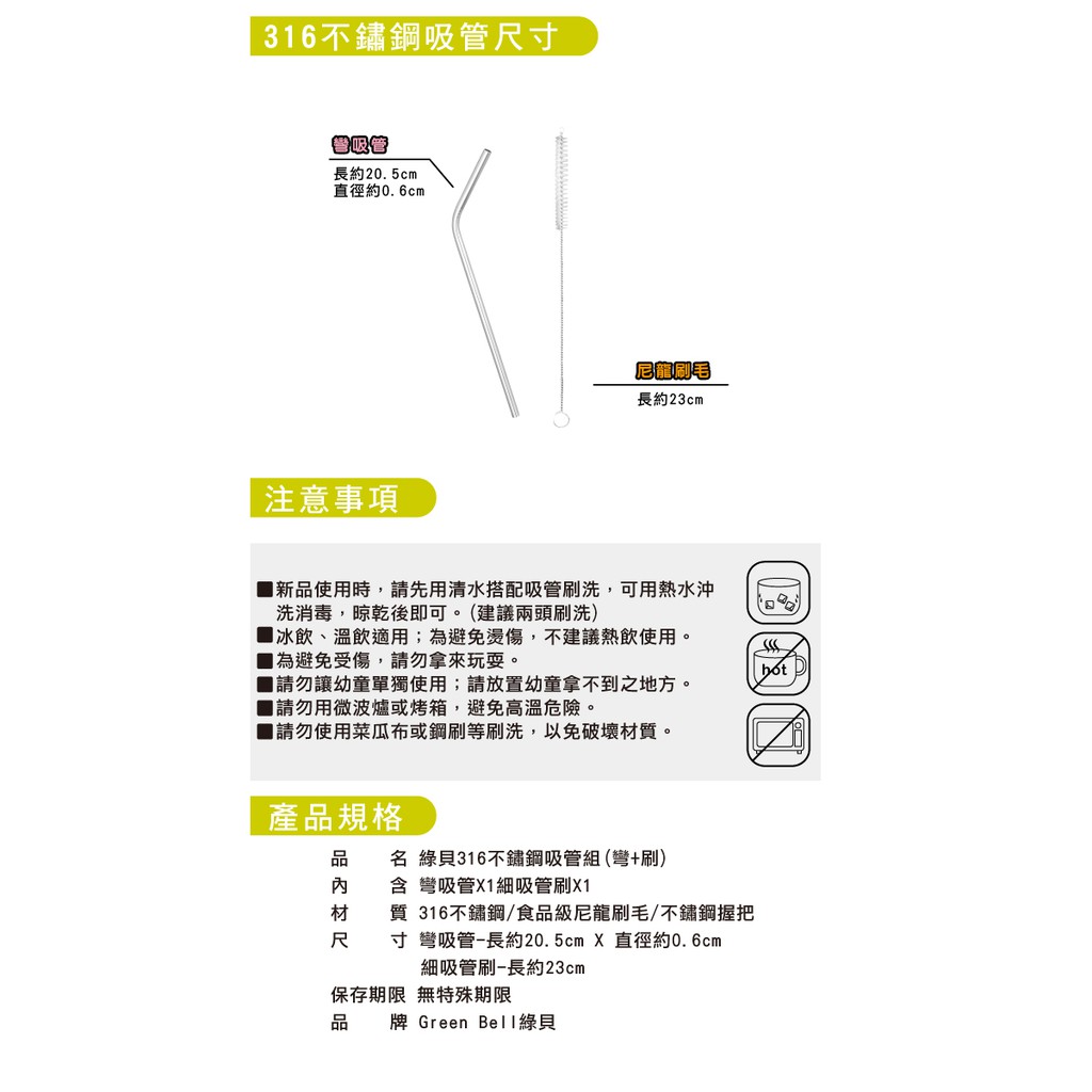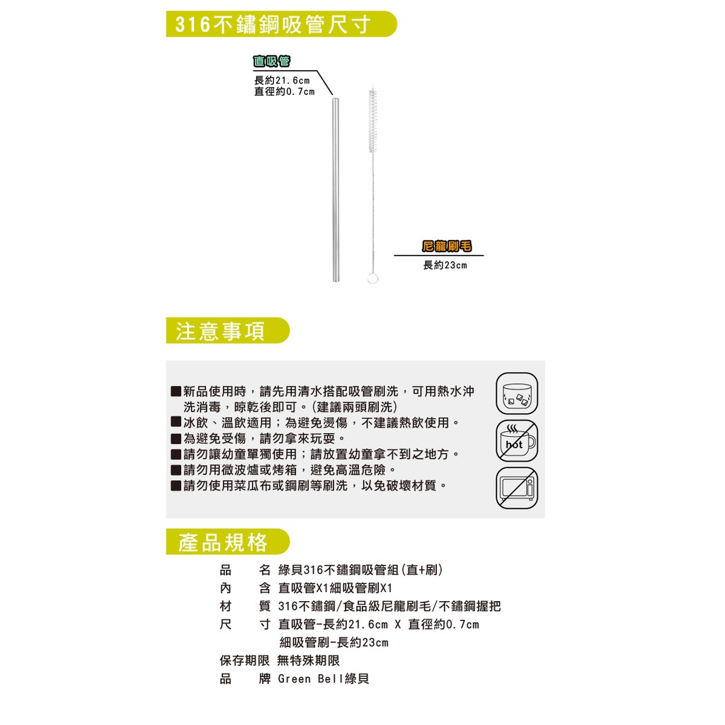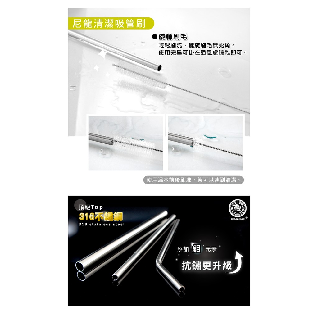 GREEN BELL 綠貝 316不鏽鋼吸管-附刷(直吸管/彎吸管/珍珠吸管)直吸管|彎吸管|珍珠吸管Straws【Green Bell綠貝 官方直營旗艦店】