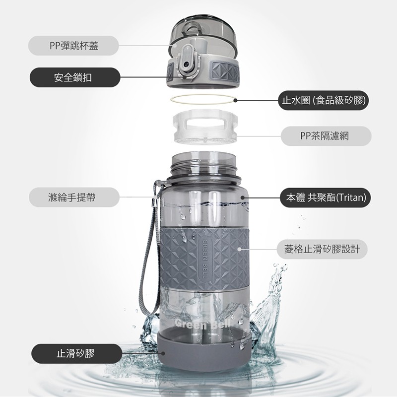 GREEN BELL 綠貝 Tritan果漾彈蓋水壺350ML果漾白|果漾綠|果漾灰|果漾粉|果漾藍Cups, Mugs & Glasses【Green Bell綠貝 官方直營旗艦店】