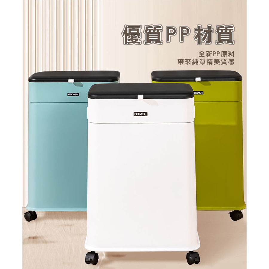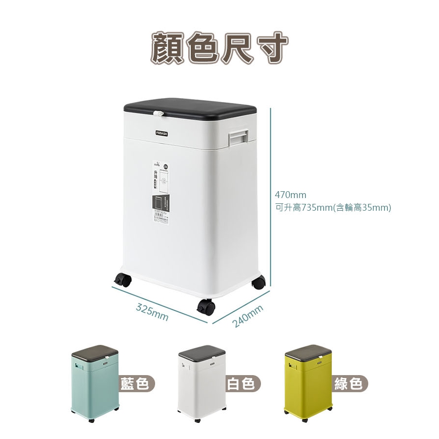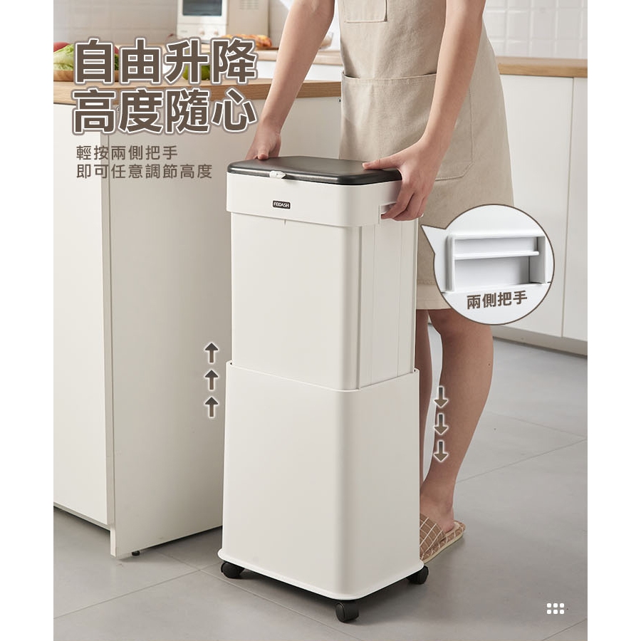 免運【20L】可升降垃圾桶 掀蓋式垃圾桶 移動式垃圾桶 分類垃圾桶 廚房垃圾桶 廚餘桶 回收桶 帶蓋垃圾桶白色|藍色|綠色Trash & Recycling Bins【Fameli】品味生活館