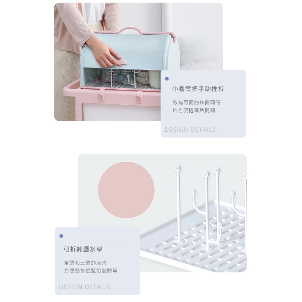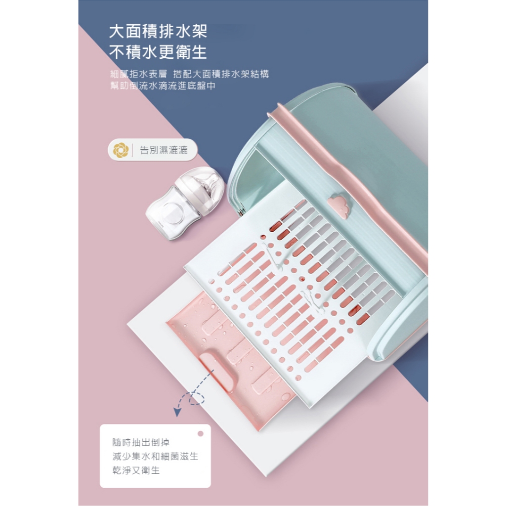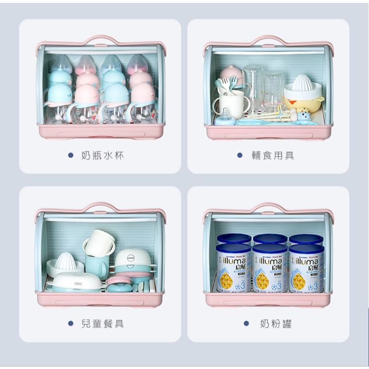 奶瓶收納箱 奶瓶晾乾架 水杯瀝水架 防塵收納盒 奶瓶架 收納箱白色|綠色|粉藍Kitchen Racks【Fameli】品味生活館
