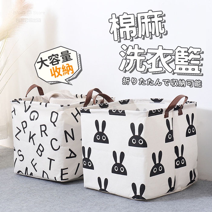 棉麻收納籃 可折疊 免運 台灣出貨 日系風格 髒衣籃 收納籃 洗衣籃 日式收納 無印風【HF198】黑點|麥穗|NG款(隨機樣式)|正黑三角形|兔子|黑色幾何|字母|玩具車Laundry Bags & BasketsBANG 潮流男女裝服飾、流行生活百貨專賣