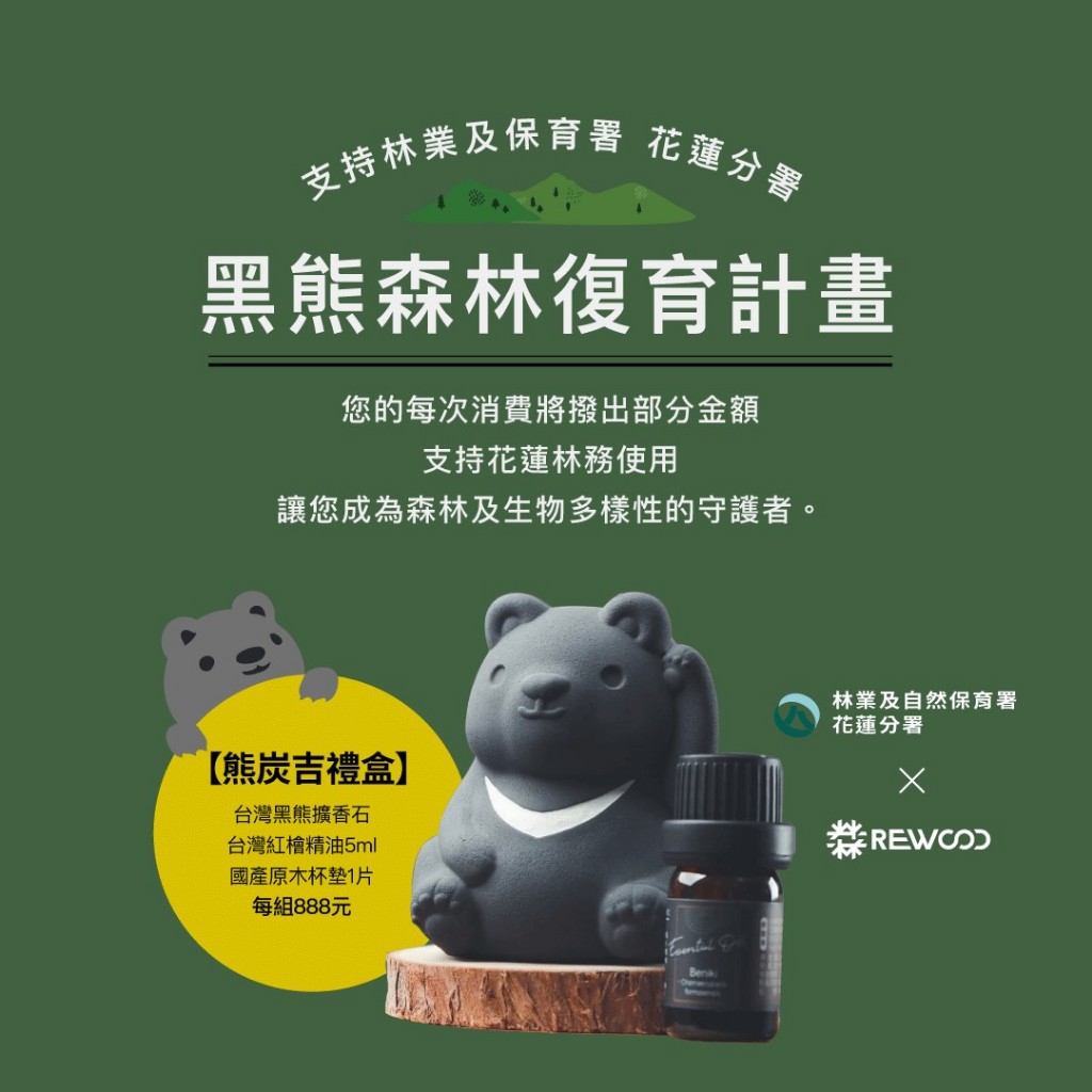 熊炭吉-台灣黑熊竹炭擴香石禮盒-(附台灣檜木精油)/ESG/禮物/禮贈品熊炭吉-黑熊擴香石禮盒(無精油)|TAIWAN熊棒擴香石+檜木精油|熊炭吉-黑熊擴香石禮盒+檜木精油Air Fresheners & Home Fragrance【官方直營】木酢達人-木酢液清潔用品-「與山生活,創意自然生活用品。」
