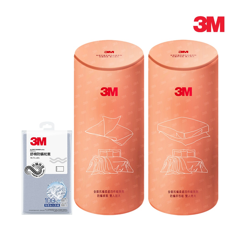 3M 柔感系列-防蟎被套四件組(被套+六面床包+枕套x2)雙人|雙人加大Bedsheets, Pillowcases & Bolster Cases3M 授權官方旗艦館