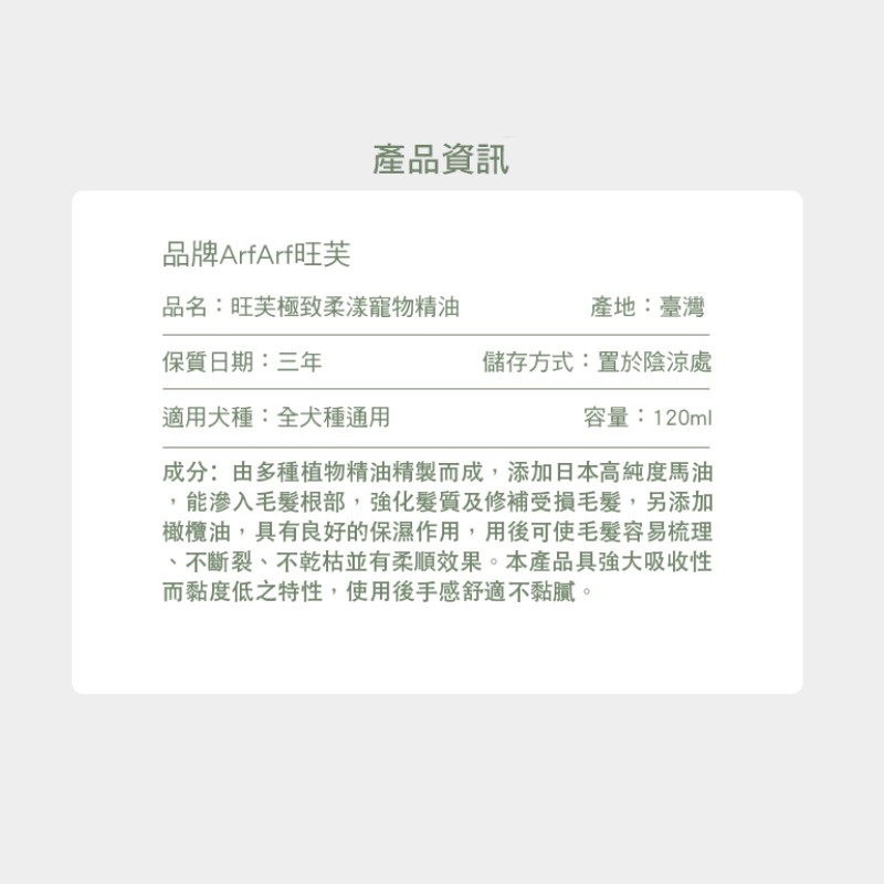【Arf Arf 旺芙】極緻柔漾 馬油寵物精油 120ml2瓶寵物精油*送貓掌膏|4瓶寵物精油*送濕巾和貓掌膏|極緻柔漾 馬油寵物精油 120ml|即期品 有效期限2026/2/12Essential OilsArf Arf 旺芙-官方旗艦店