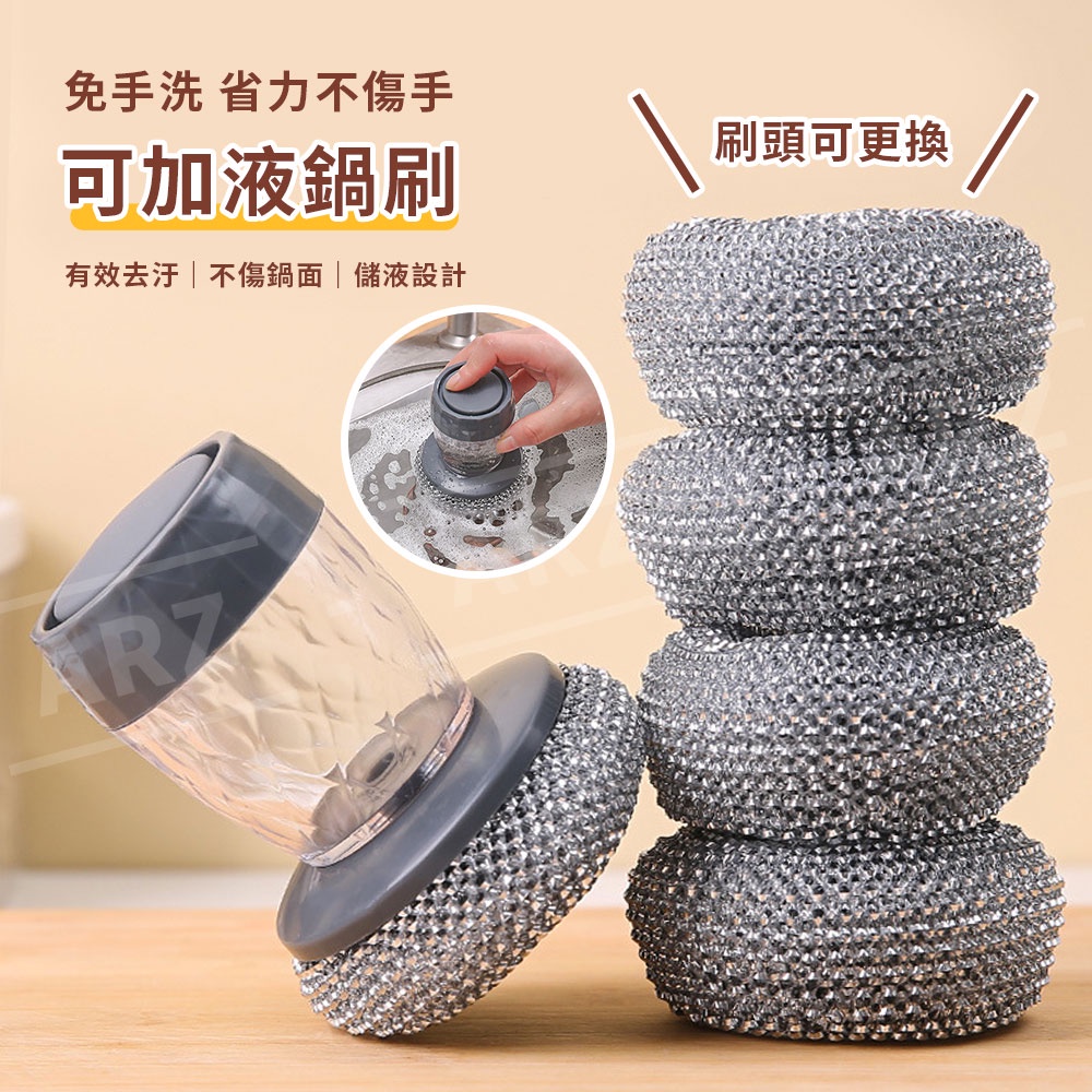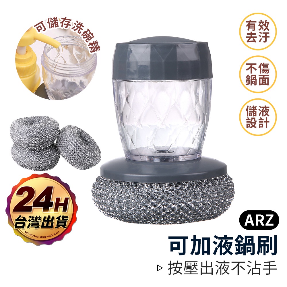 自動加液洗鍋刷 刷鍋神器【ARZ】【D102】懶人清潔刷 鋼刷 洗碗球 不傷手洗碗刷 洗碗刷 清潔海綿 洗鍋刷 菜瓜布可加液鍋刷/鋼絲款|可加液鍋刷/PET款|單購-鋼絲清潔球|單購-PET清潔球Sponges & Scouring PadsARZ行動商城