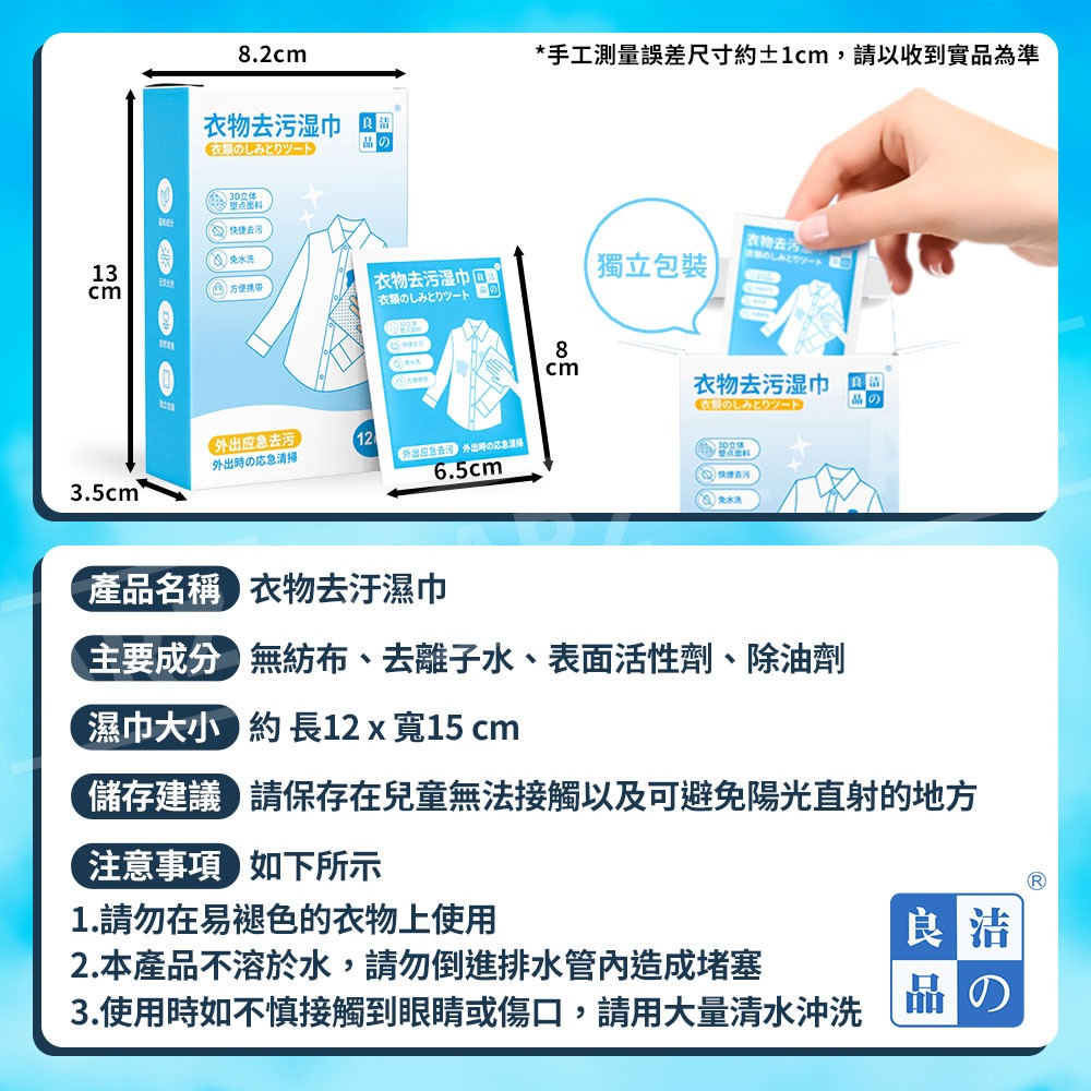 潔之良品 衣物去污濕巾【ARZ】【F077】衣物去汙濕巾 去污濕紙巾 去漬濕紙巾 衣服 清潔濕紙巾 應急 去漬棉 去汙筆12片/盒裝Laundry CareARZ行動商城
