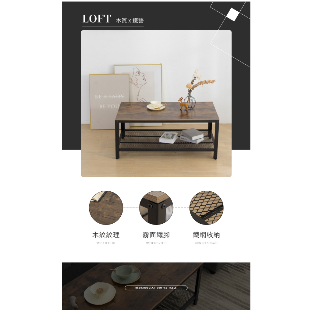 【IDEA】威特雙層長型收納茶几/合室桌(2款任選)北歐舊木紋|復古髒木紋Desks & Tables【IDEA】視覺概念