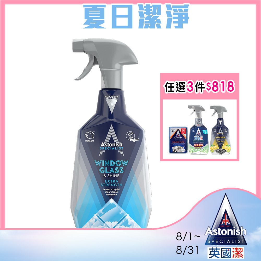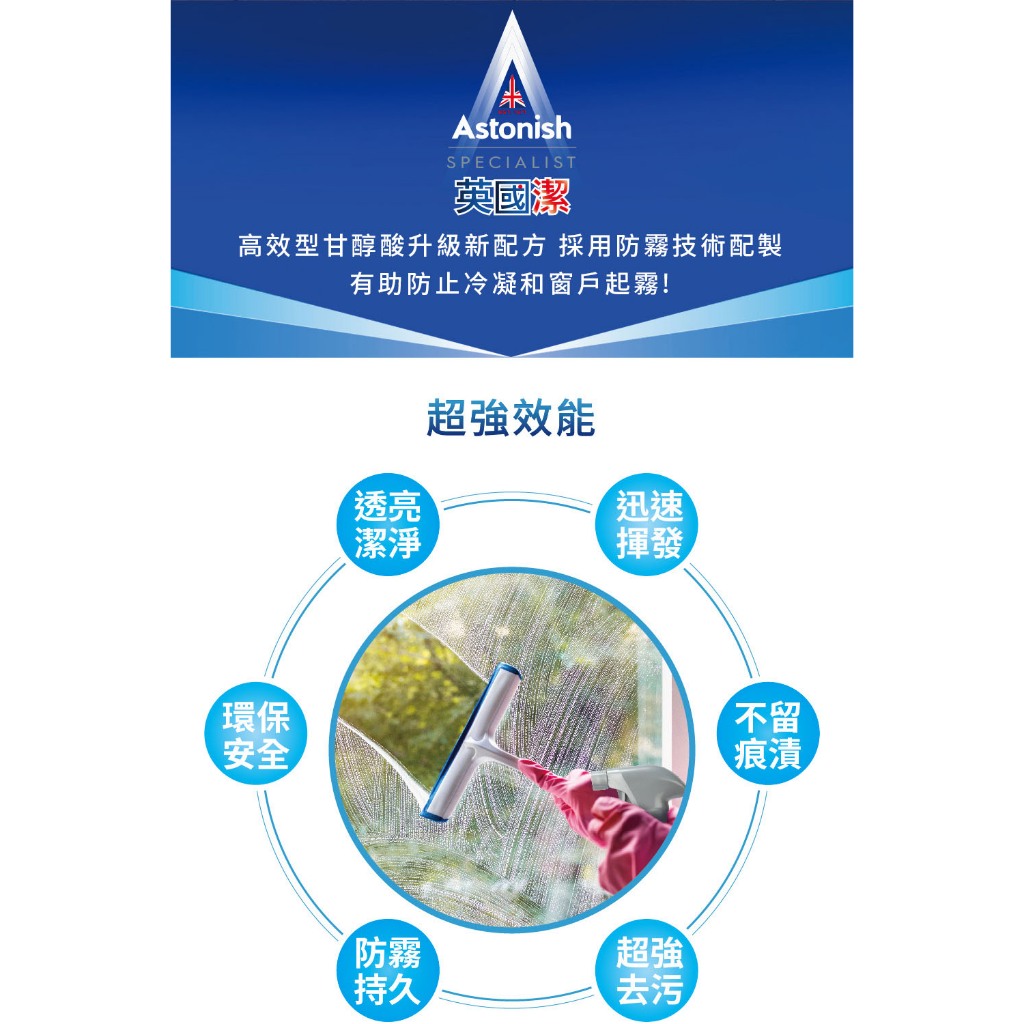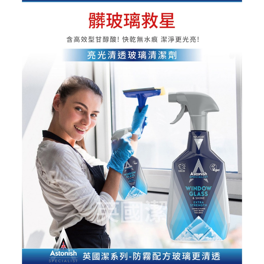 【Astonish】英國潔亮光清透玻璃清潔劑1瓶(750mlx1)玻璃清潔 防塵 防霧 窗戶清潔【Astonish】英國潔亮光清透玻璃清潔劑1瓶(750mlx1)玻璃清潔 防塵 防霧 窗戶清潔Cleaning AgentsAstonish 英國潔|官方台灣總代理