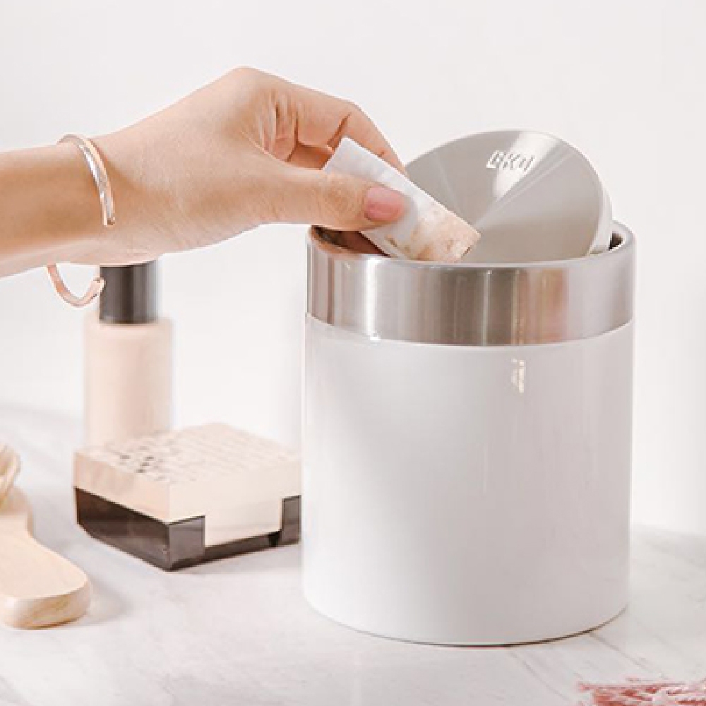 EKO 方迪桌面垃圾桶-1.5L 不鏽鋼桌上型 桌面垃圾桶 車用垃圾桶 汽車 搖蓋式銀色|白色Trash & Recycling Bins【HOME WORKING元艇|居家生活|EKO垃圾桶】