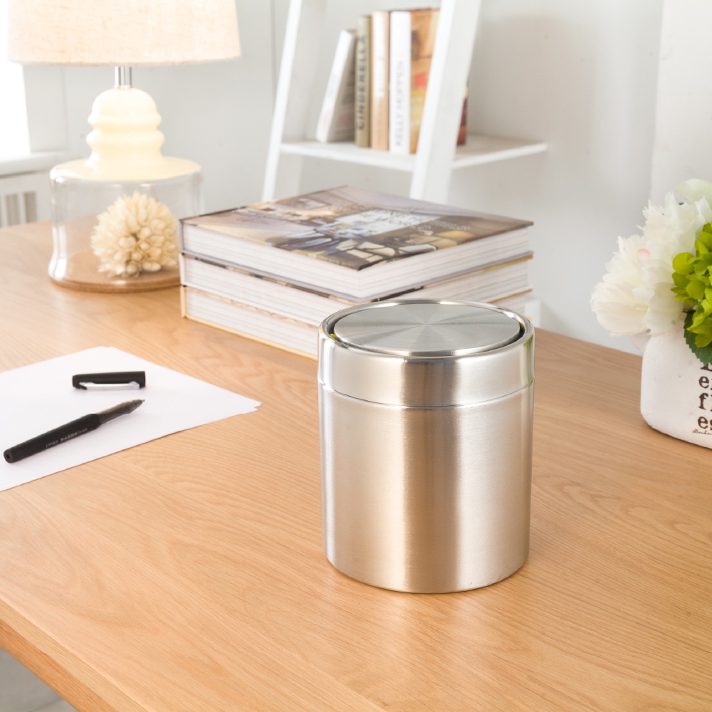 EKO 方迪桌面垃圾桶-1.5L 不鏽鋼桌上型 桌面垃圾桶 車用垃圾桶 汽車 搖蓋式
