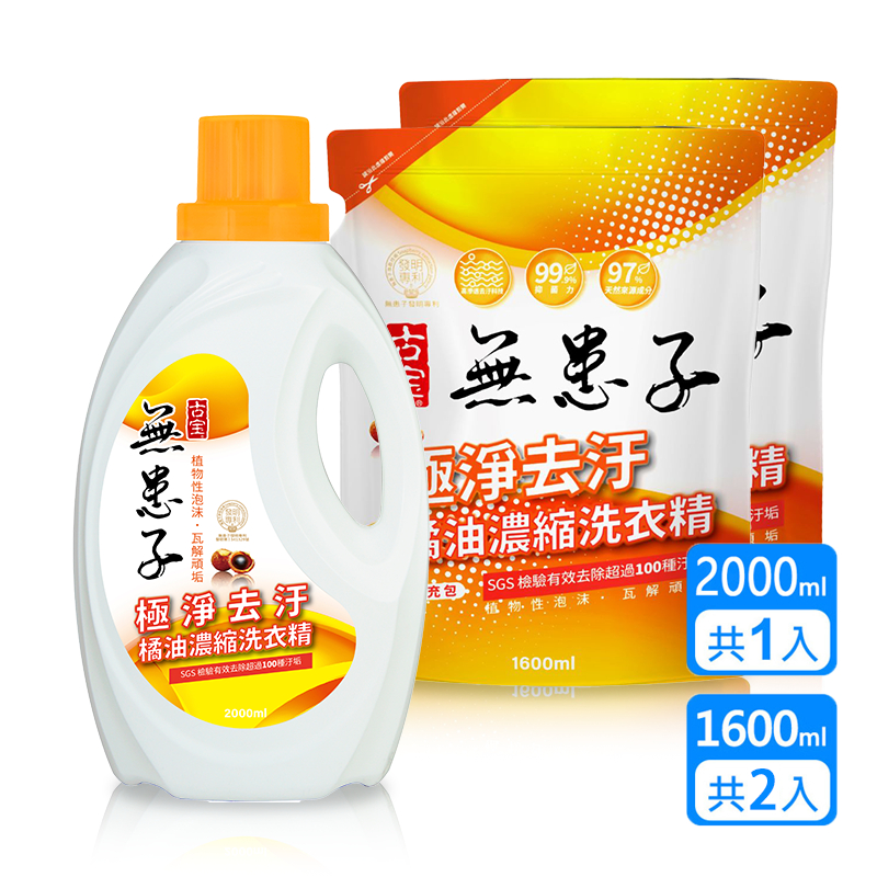【古寶】橘油濃縮洗衣精-極淨去污2000ml×1 + 1600ml補充包×2 (對付生活超過100種髒污)【古寶】橘油濃縮洗衣精-極淨去污2000ml×1 + 1600ml補充包×2 (對付生活超過100種髒污)Laundry Care【官方直營】古寶無患子