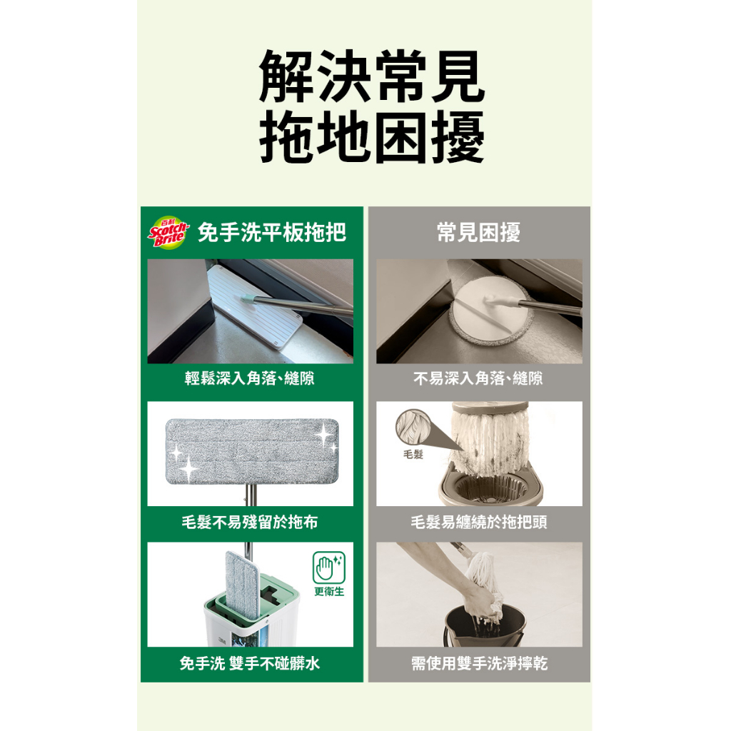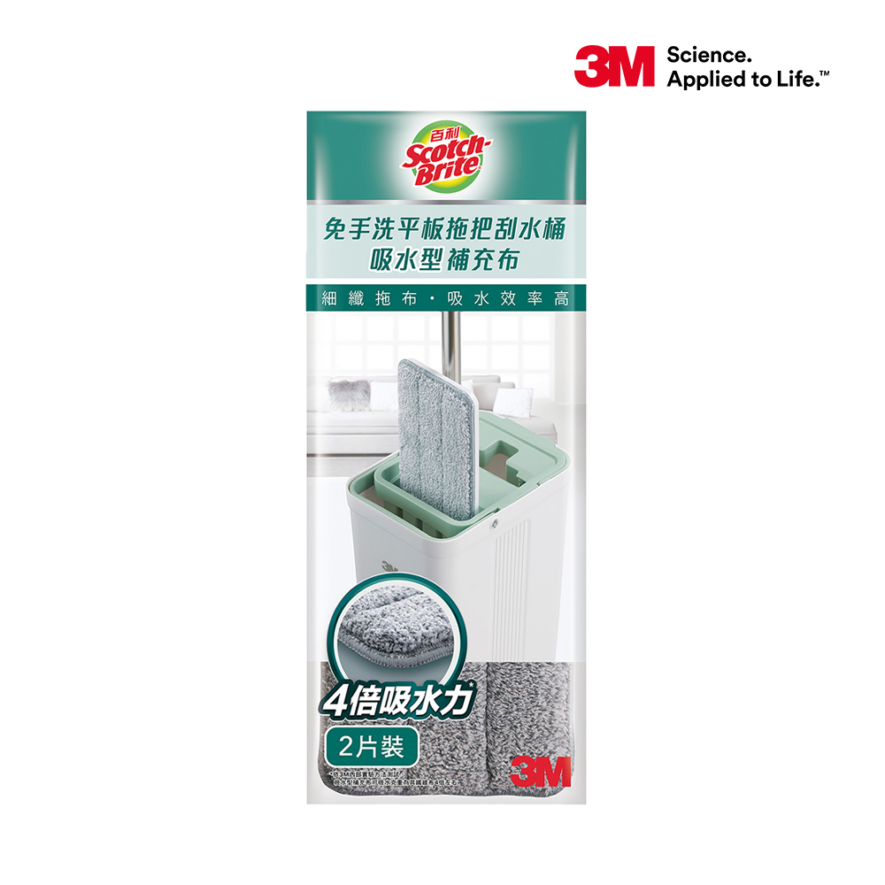 3M 百利免手洗平板拖把刮水桶吸水型補充布2入-HFB002/4倍吸水布/通用平板拖把刮水桶1個Mops3M 授權官方旗艦館