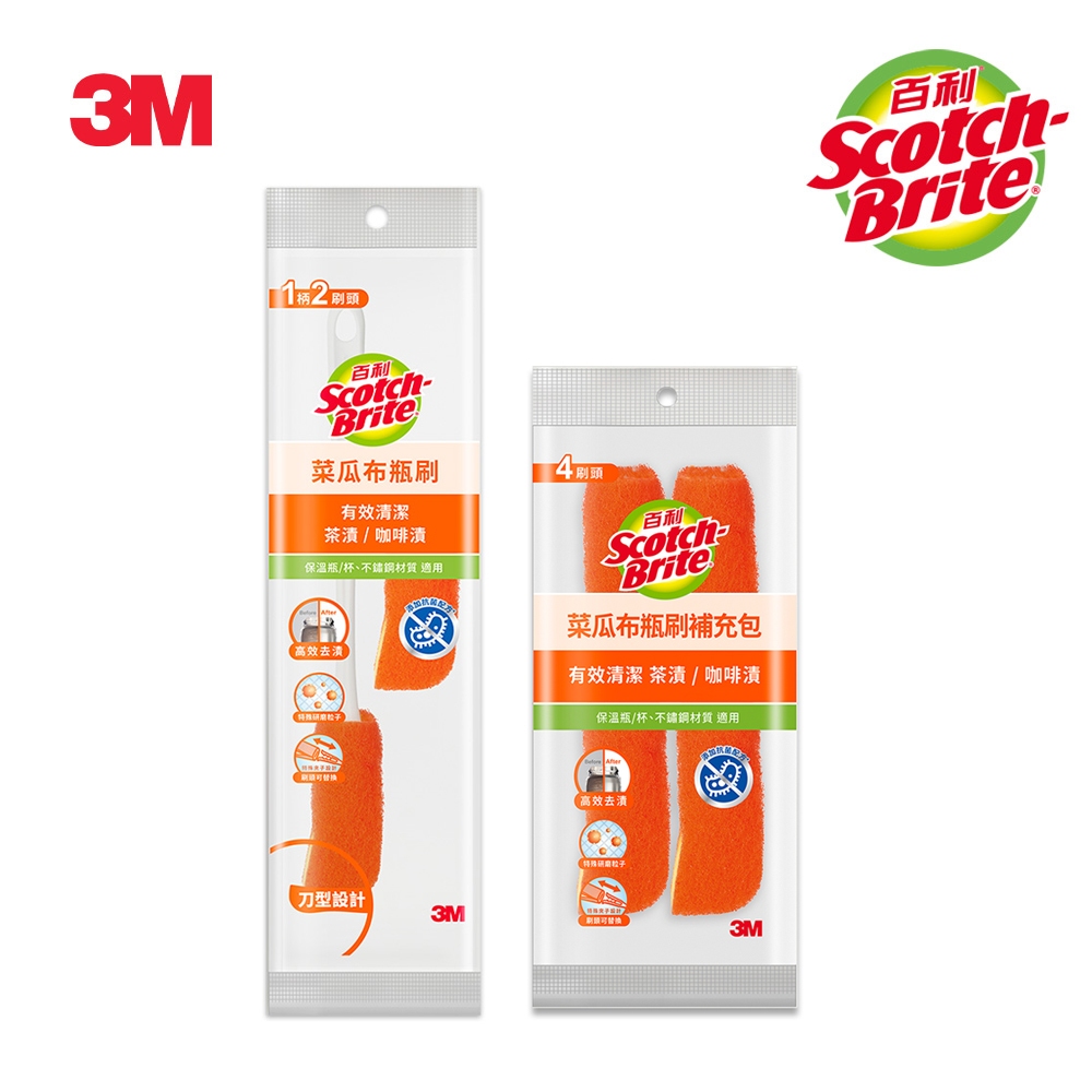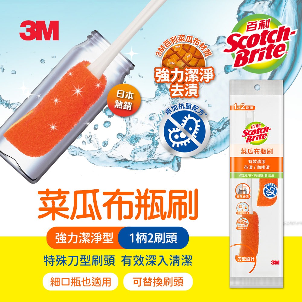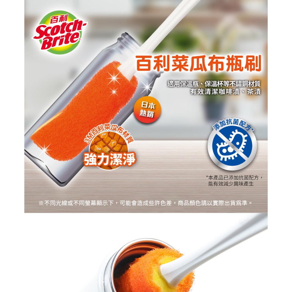 3M SB1H2R 百利菜瓜布瓶刷-橘色強力潔淨型(1柄2刷頭) / (補充包)1柄2刷頭|4入補充包Cleaning Brushes3M 授權官方旗艦館