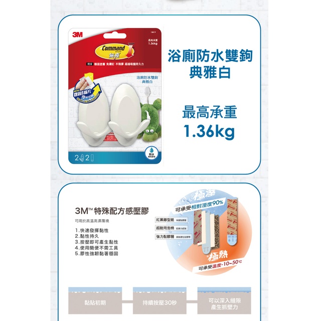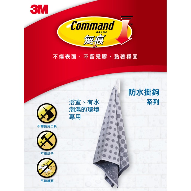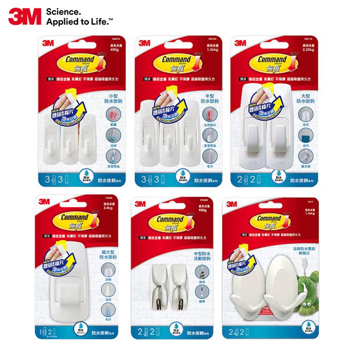3M 無痕防水掛鉤一般包-多種款式 掛勾 免鑽浴室掛勾小型|中型|大型|中型活動掛鉤|超大型Hooks3M 授權官方旗艦館