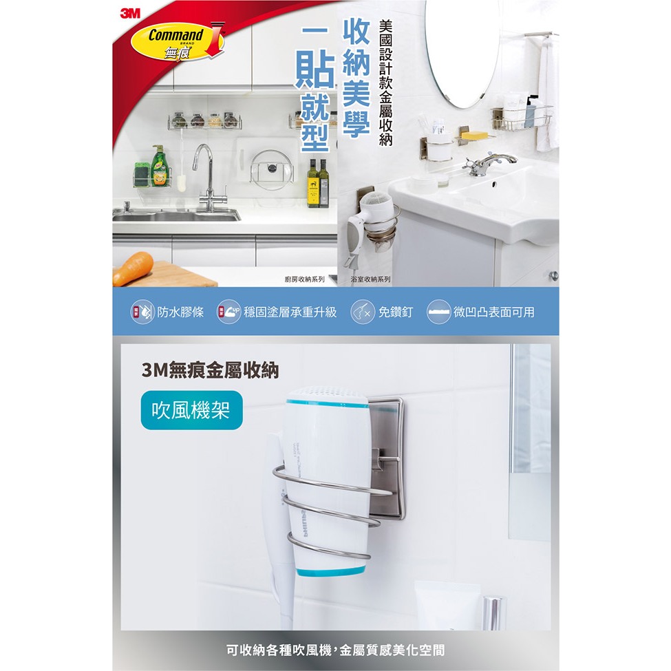 3M 無痕 金屬防水收納-浴室免鑽 吹風機架-US設計款3M 無痕 金屬防水收納-浴室免鑽 吹風機架-US設計款Hooks3M 授權官方旗艦館