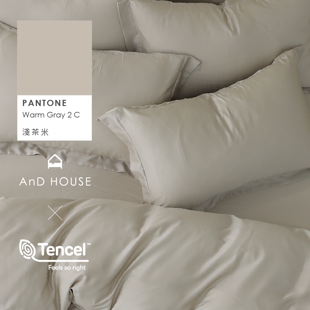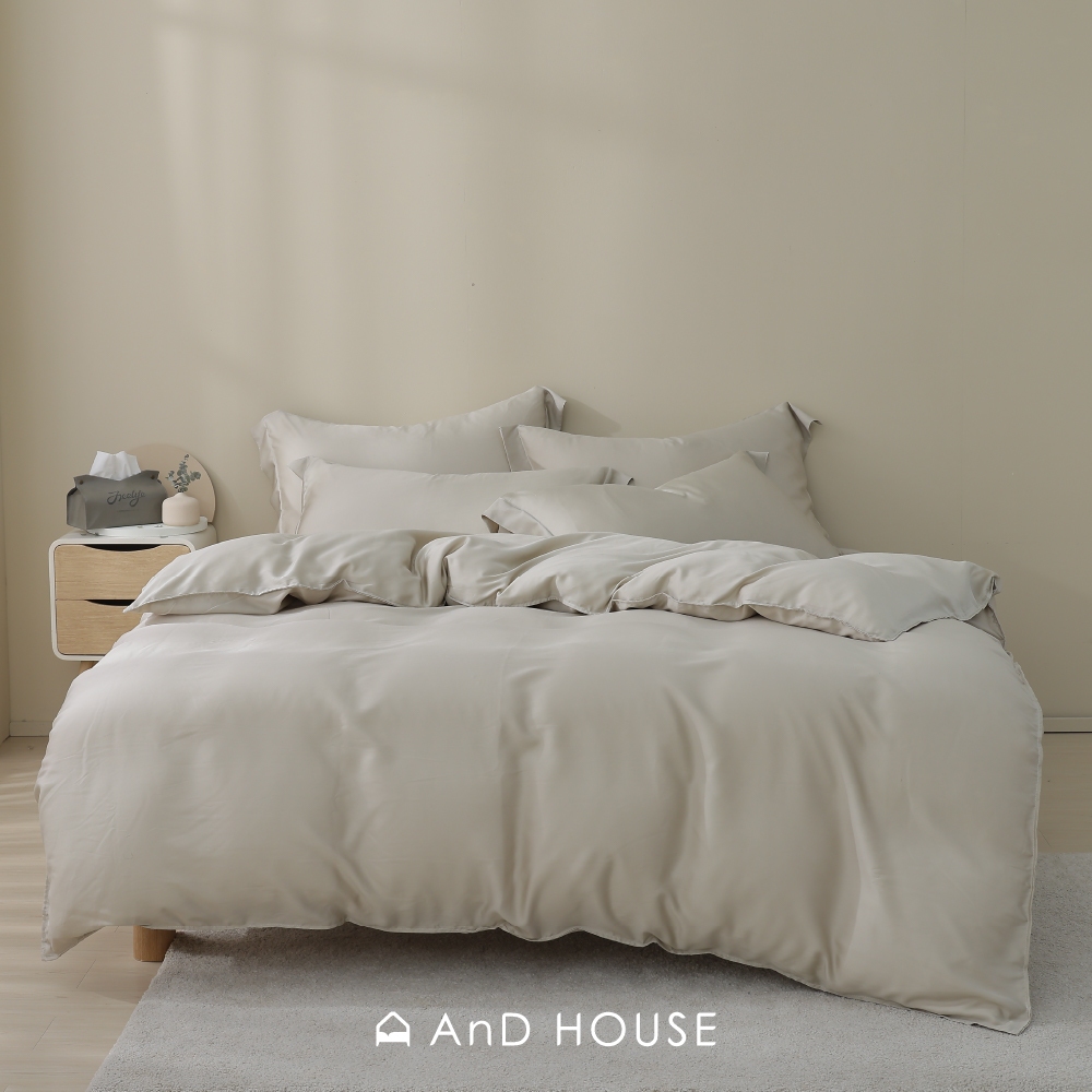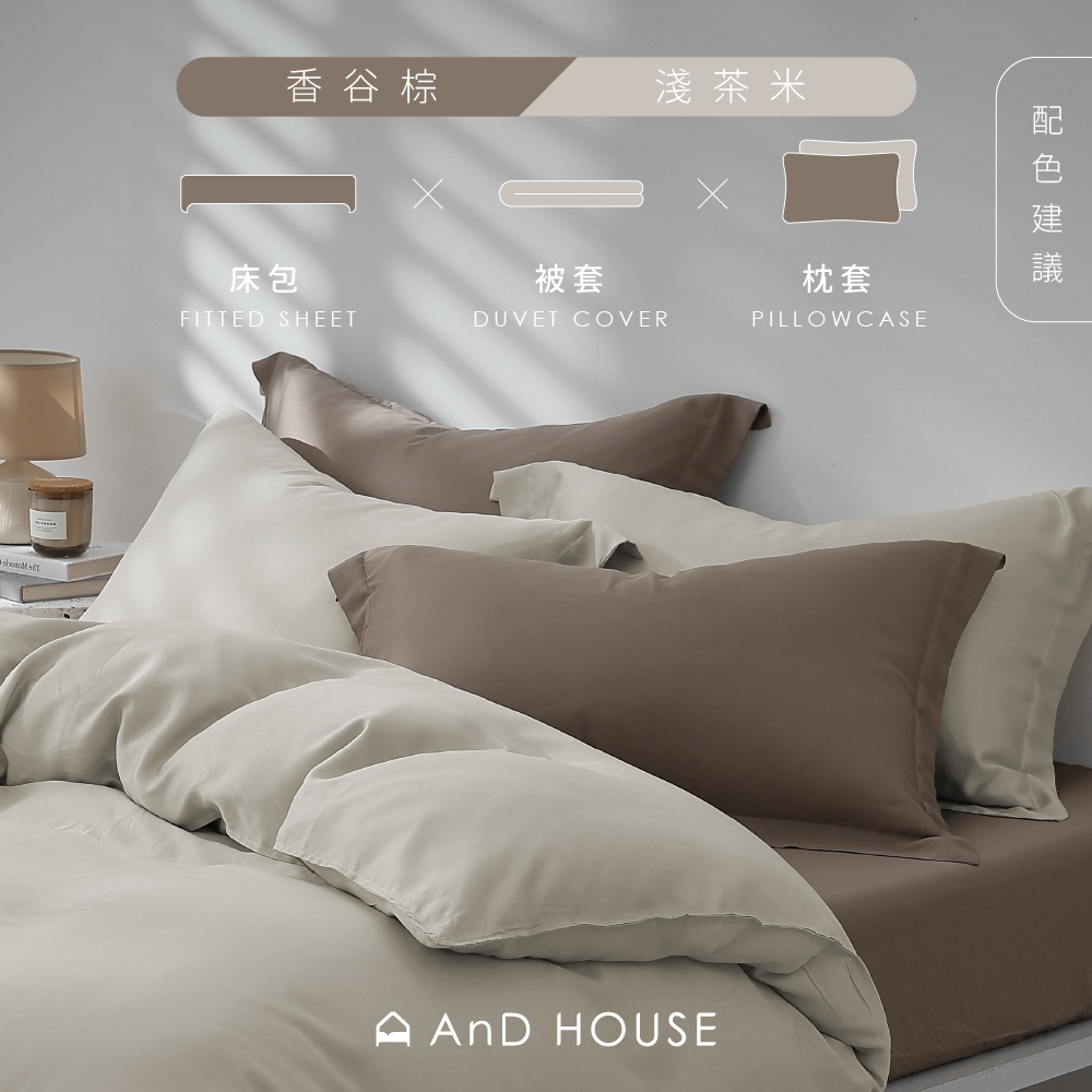 AnD House 天絲60支-淺茶米-床包被套組|安庭家居 素色 顏色任搭
