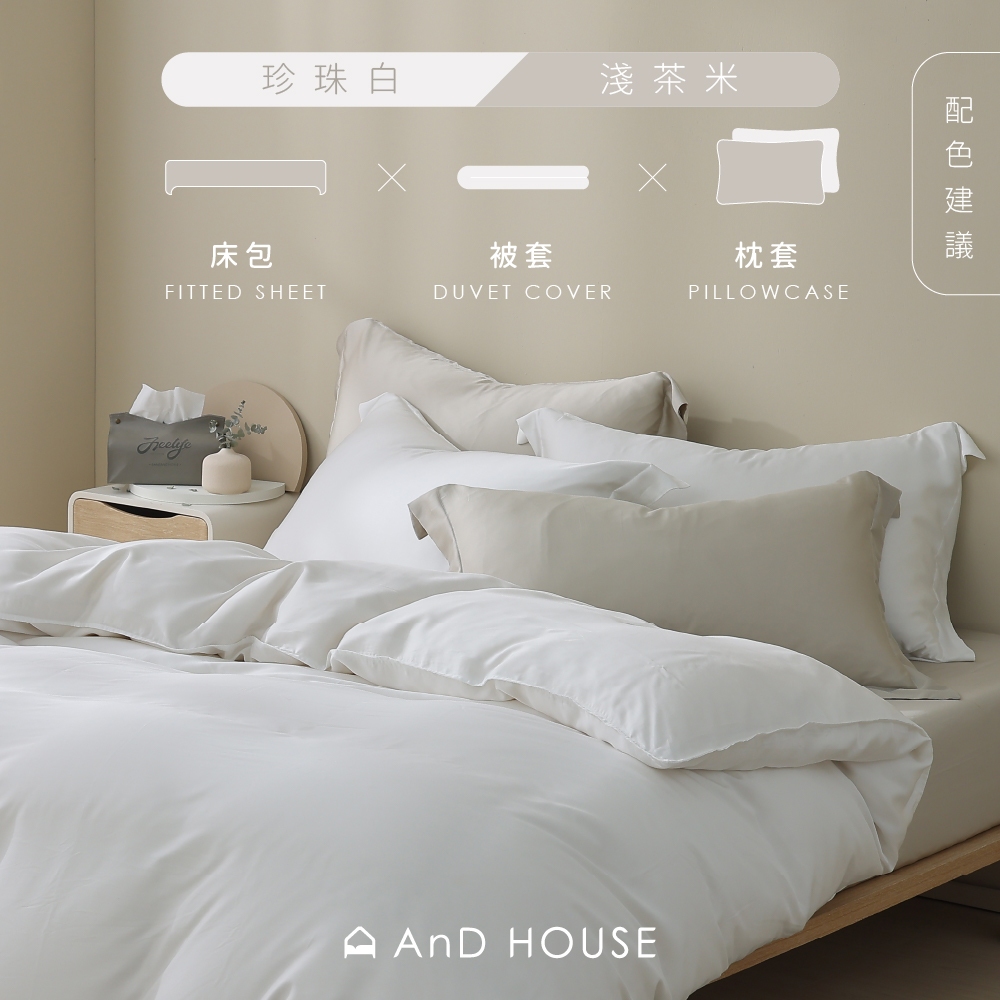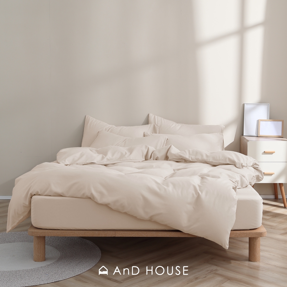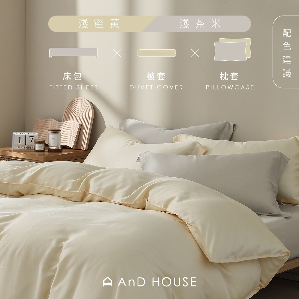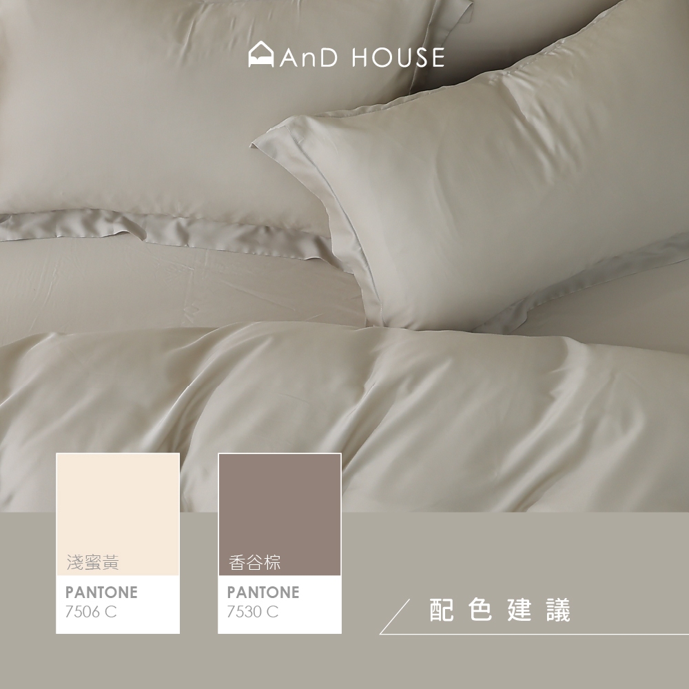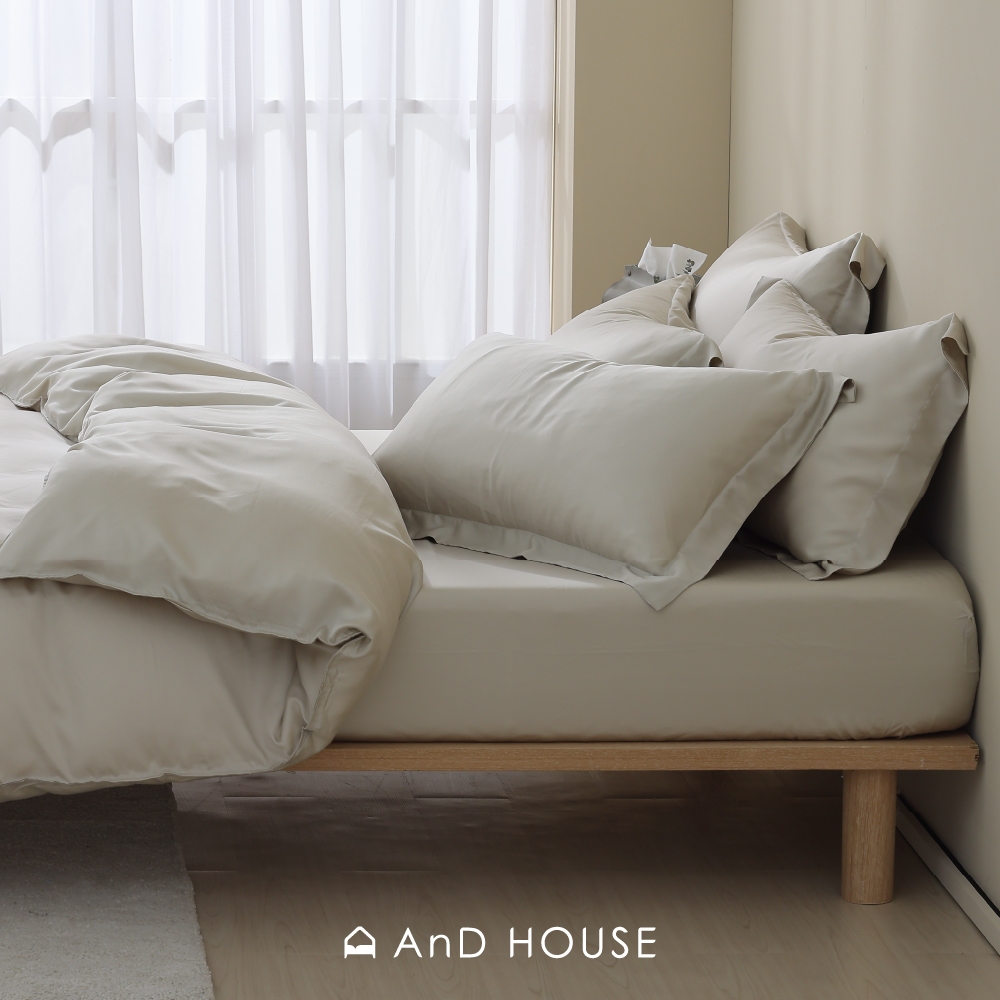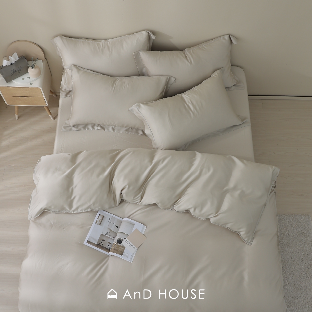 • AnD House 天絲60支-淺茶米-床包被套組|安庭家居 素色 顏色任搭