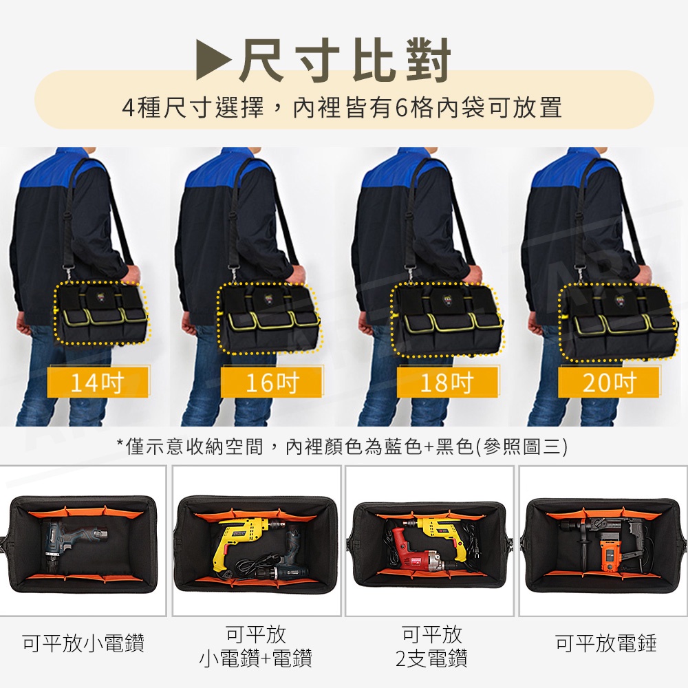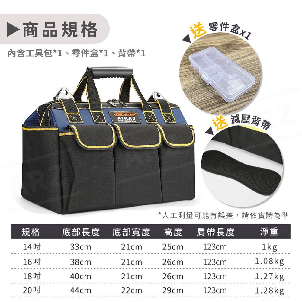 電動工具耐重包【ARZ 實拍現貨】【C105】防水加厚 五金工具包 大容量 露營工具包 重型工具包 維修工具袋 工具袋14吋加厚工具包(送零件盒)|16吋加厚工具包(送零件盒)|18吋加厚工具包(送零件盒)|20吋加厚工具包(送零件盒)ToolsARZ行動商城