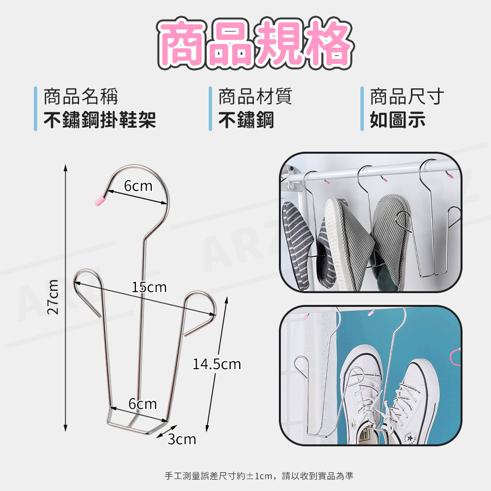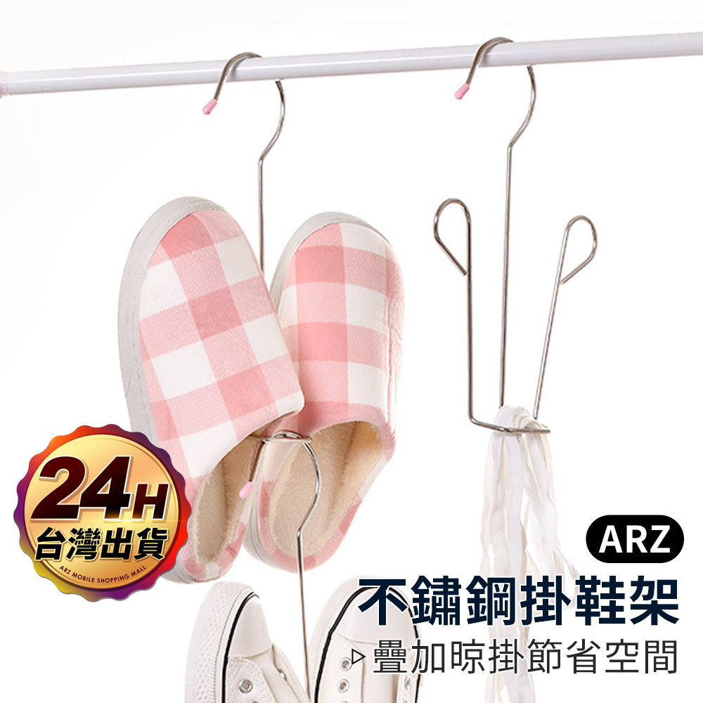 掛鞋神器 不鏽鋼曬鞋架【ARZ】【E095】曬鞋 鞋勾 掛鞋架 晾鞋架 吊掛式鞋架 多功能鞋架 鞋子收納 曬襪 曬衣夾不鏽鋼掛鞋架Hangers & PegsARZ行動商城