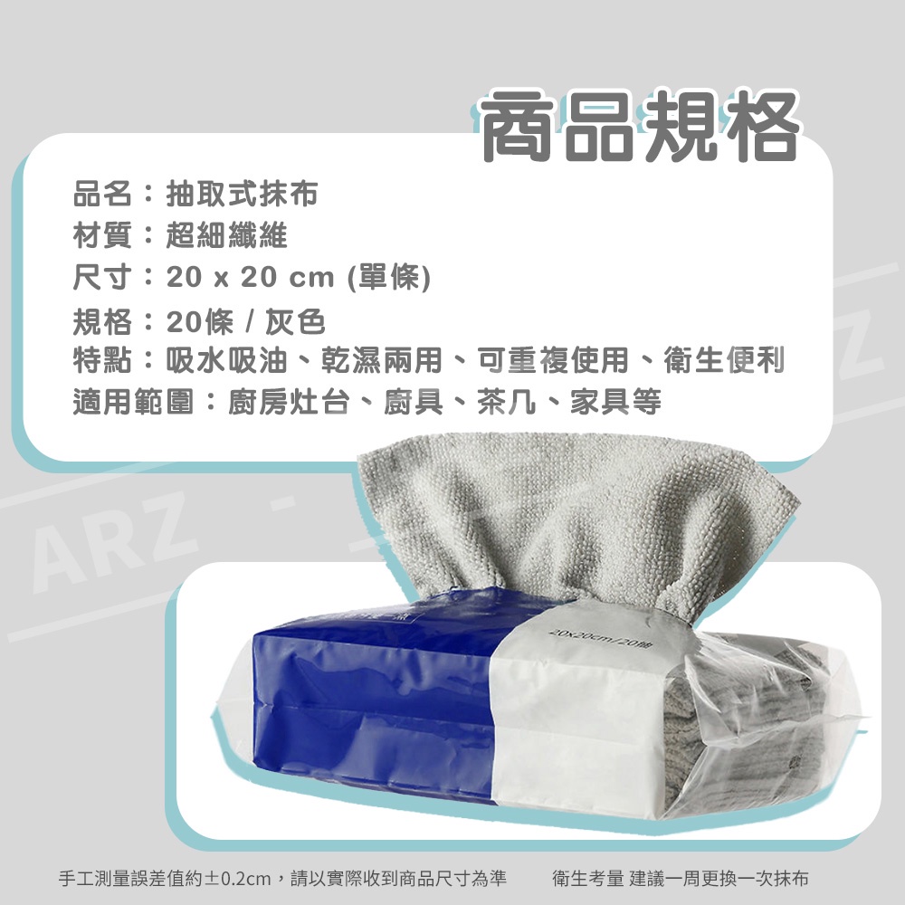 萬能清潔抹布 抽取式 20入【ARZ 實拍現貨】【D201】拭杯布 擦碗布 洗碗巾 衛浴抹布 廚房抹布 懶人抹布 洗碗布灰色,20入Cleaning ClothsARZ行動商城