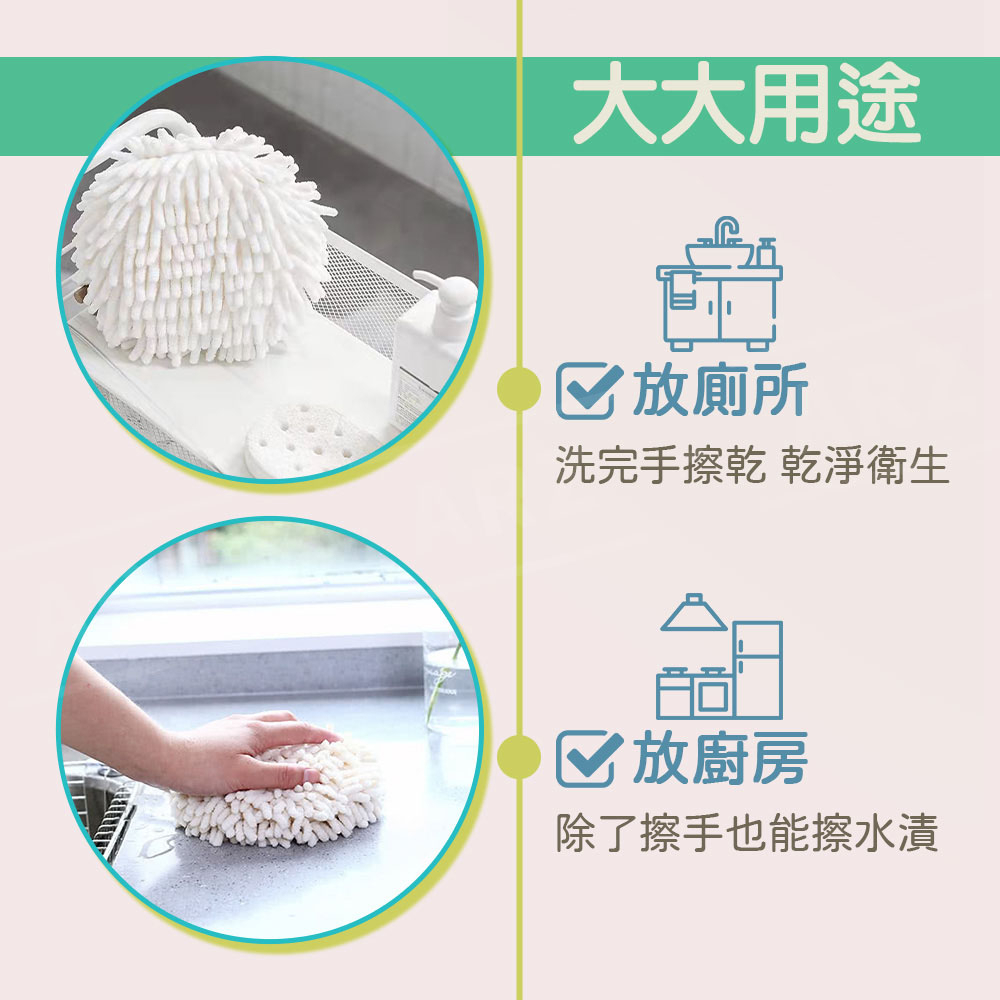 雪尼爾擦手球【ARZ】【D280】不掉毛 吸水擦手巾 洗手間/廚房擦手布 浴室擦手巾 掛式擦手布 擦手毛巾 吸水抹布