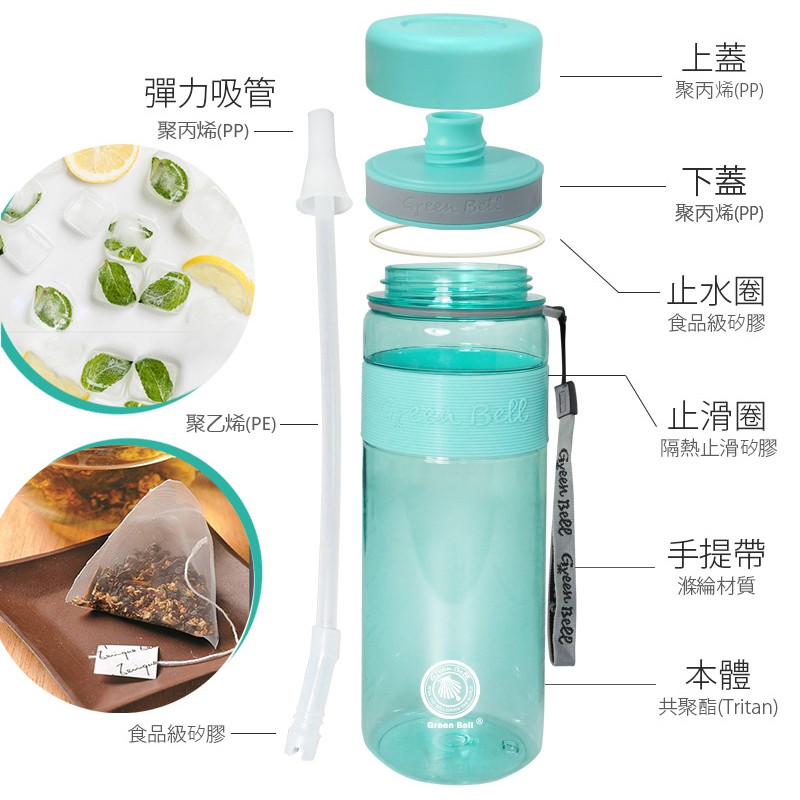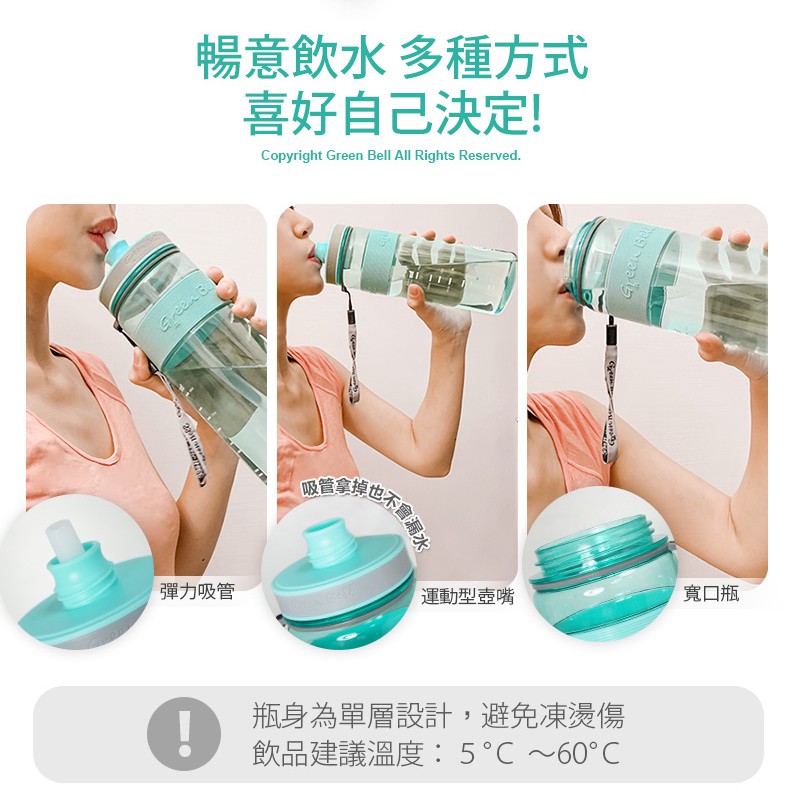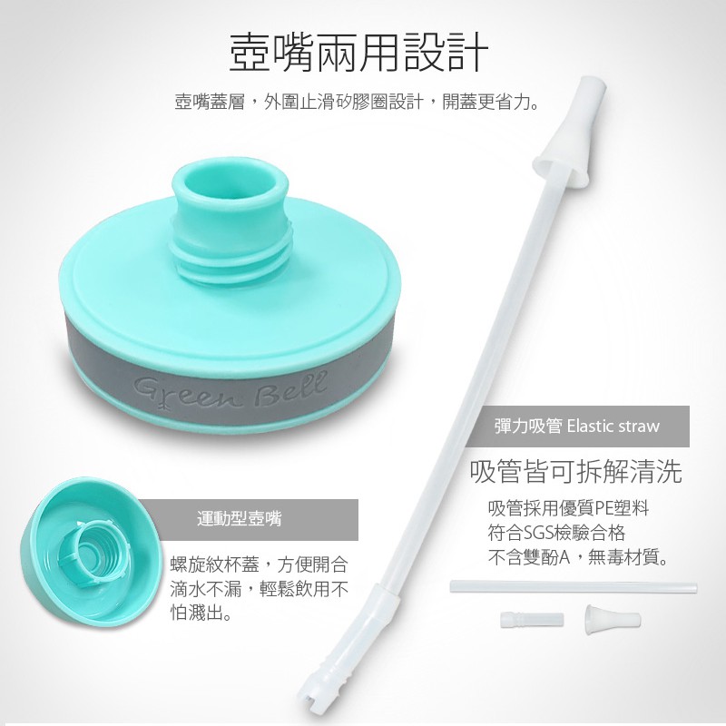 【蝦皮隔日到貨】GREEN BELL 綠貝 800ml 直身防滑Tritan吸管水壺莓果粉|湖水綠|太空灰Water Bottles & Accessories【Green Bell綠貝 官方直營旗艦店】